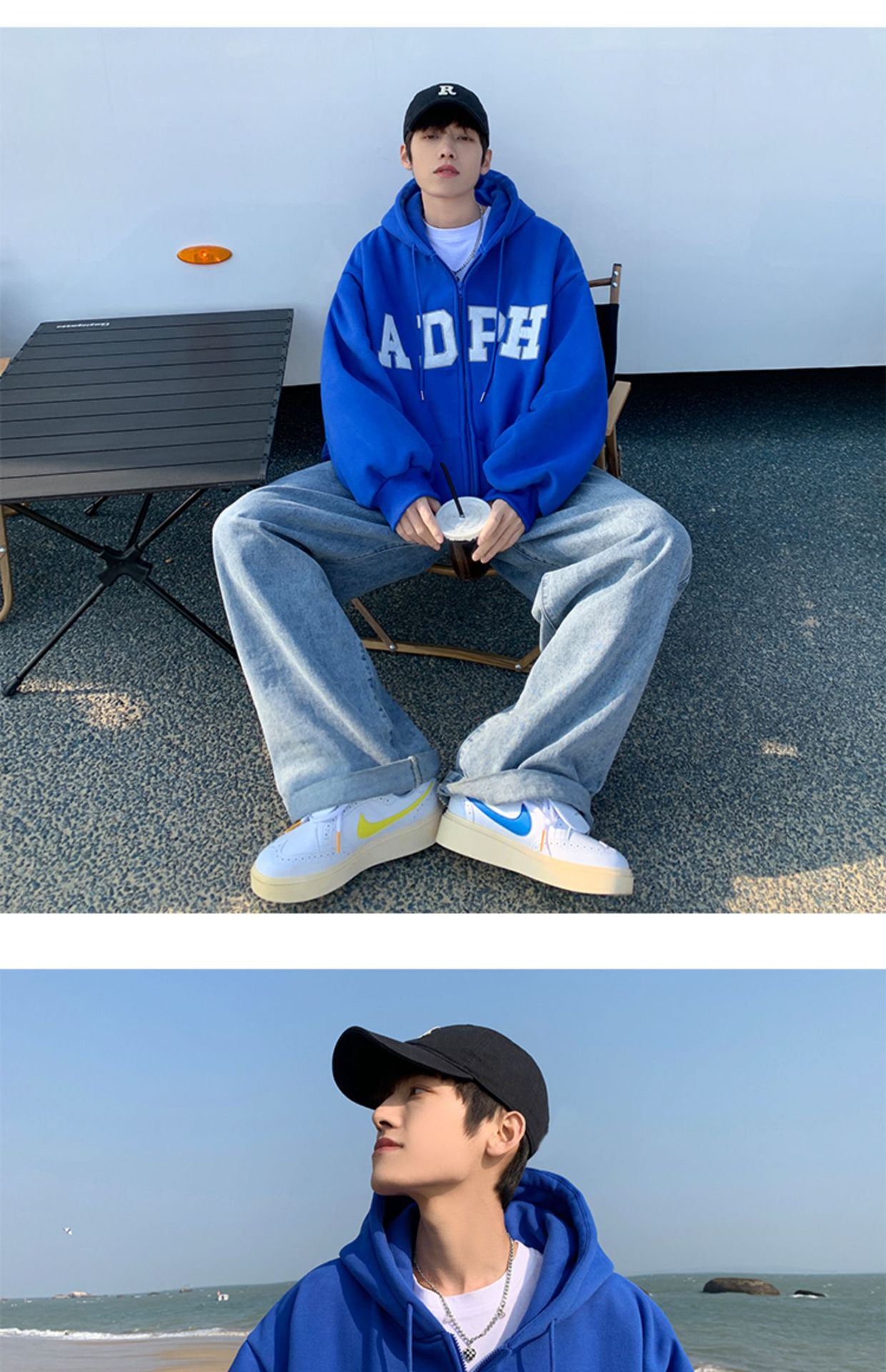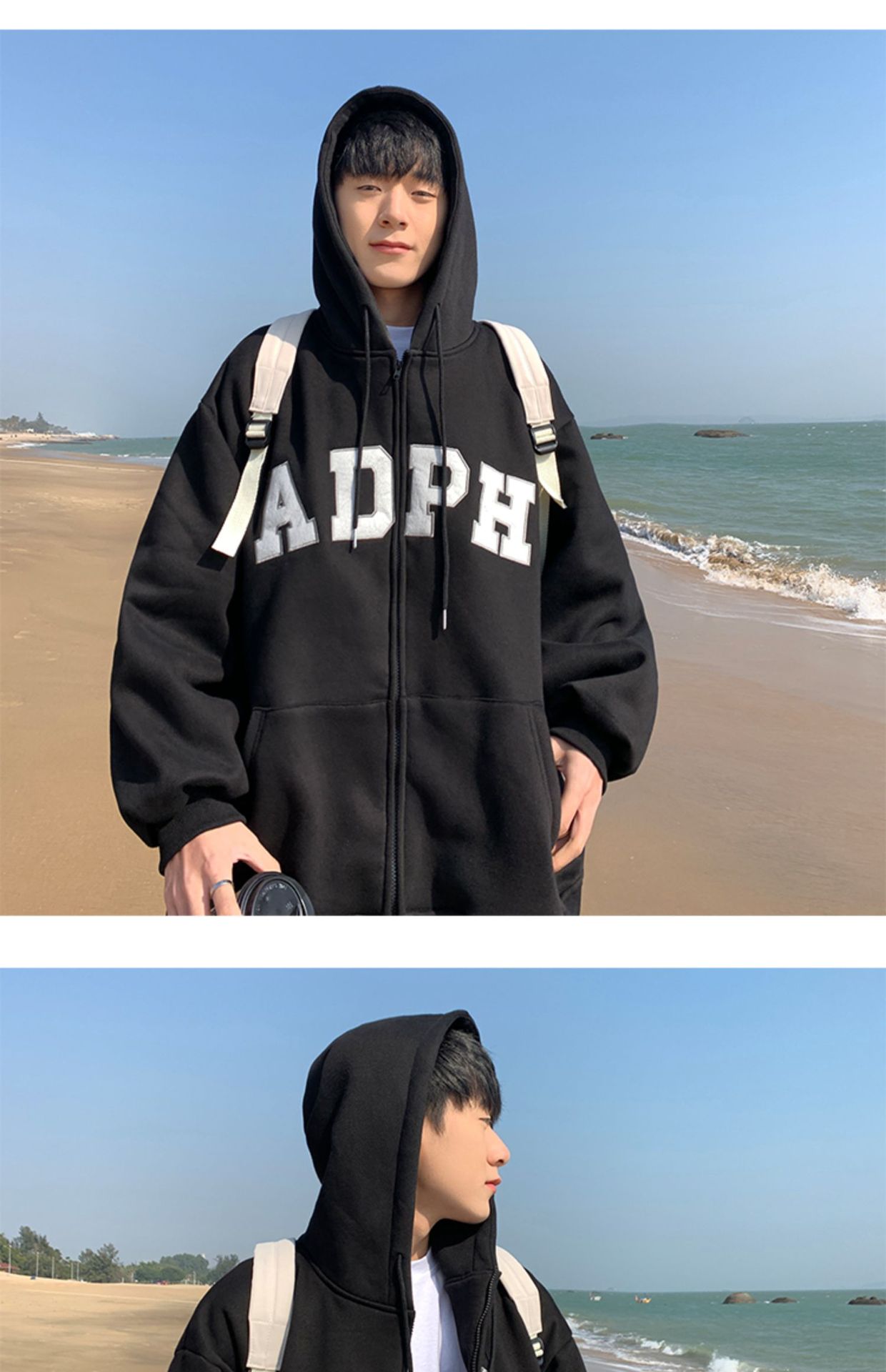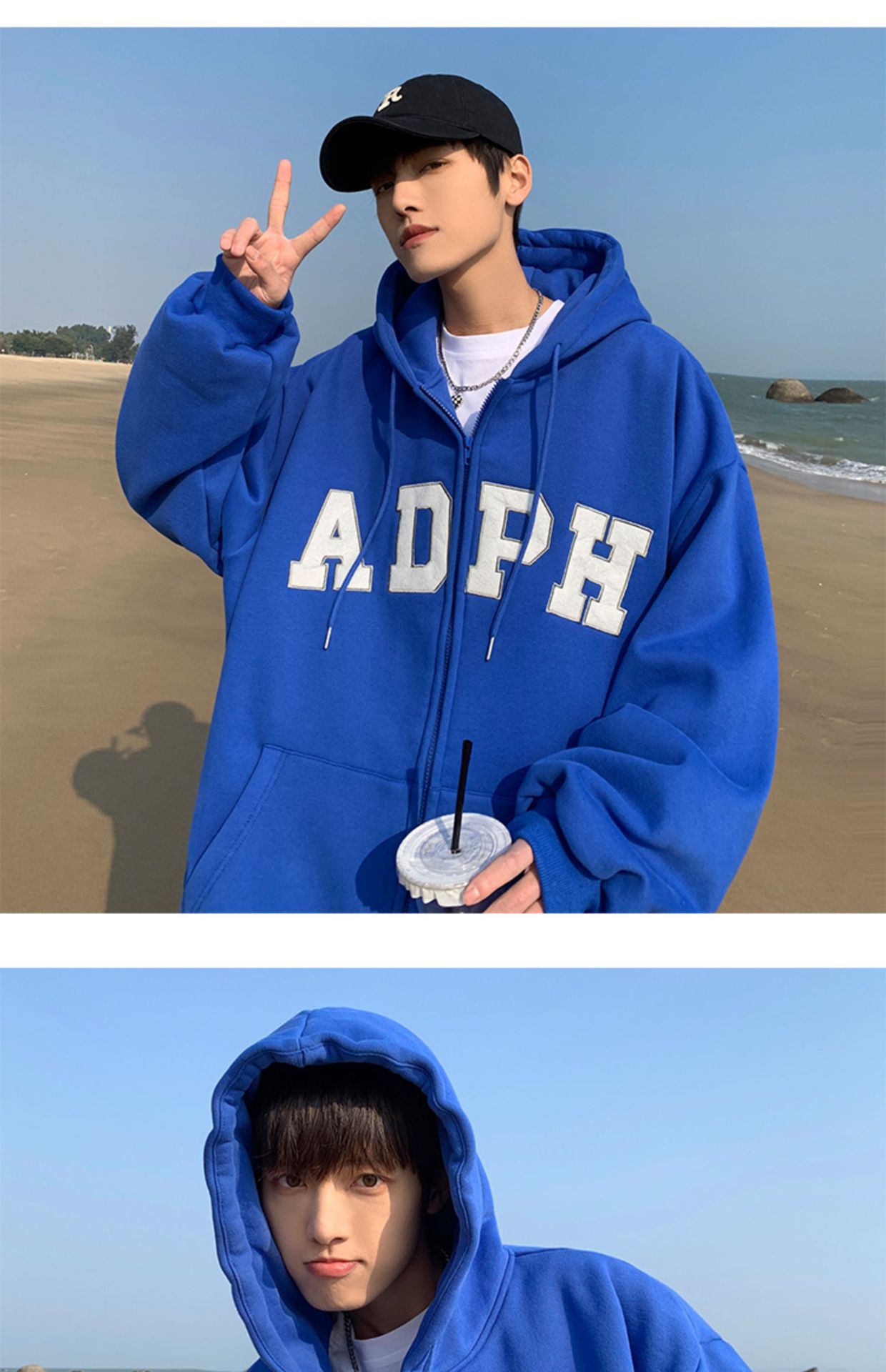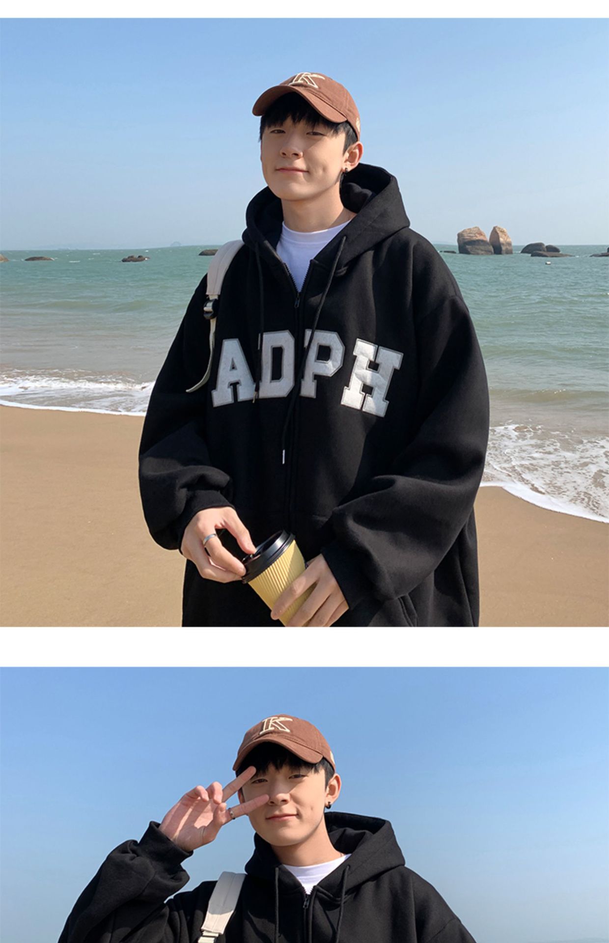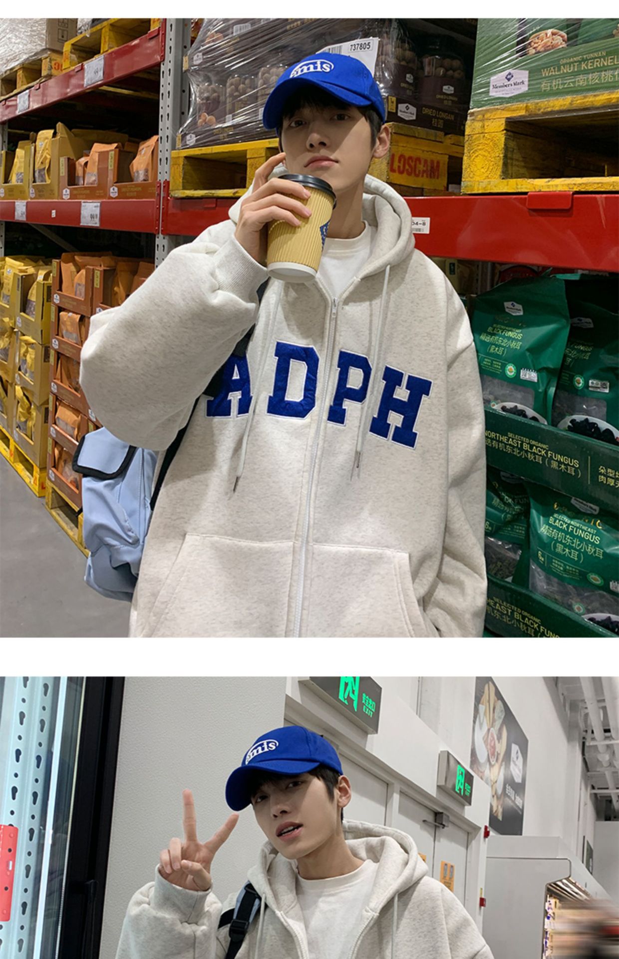 미국 스웨터 코트 남자의 가을과 겨울 패션 브랜드 느슨한 기모 겨울 2024 새로운 후드 지퍼 카디건 옷스토어 가기