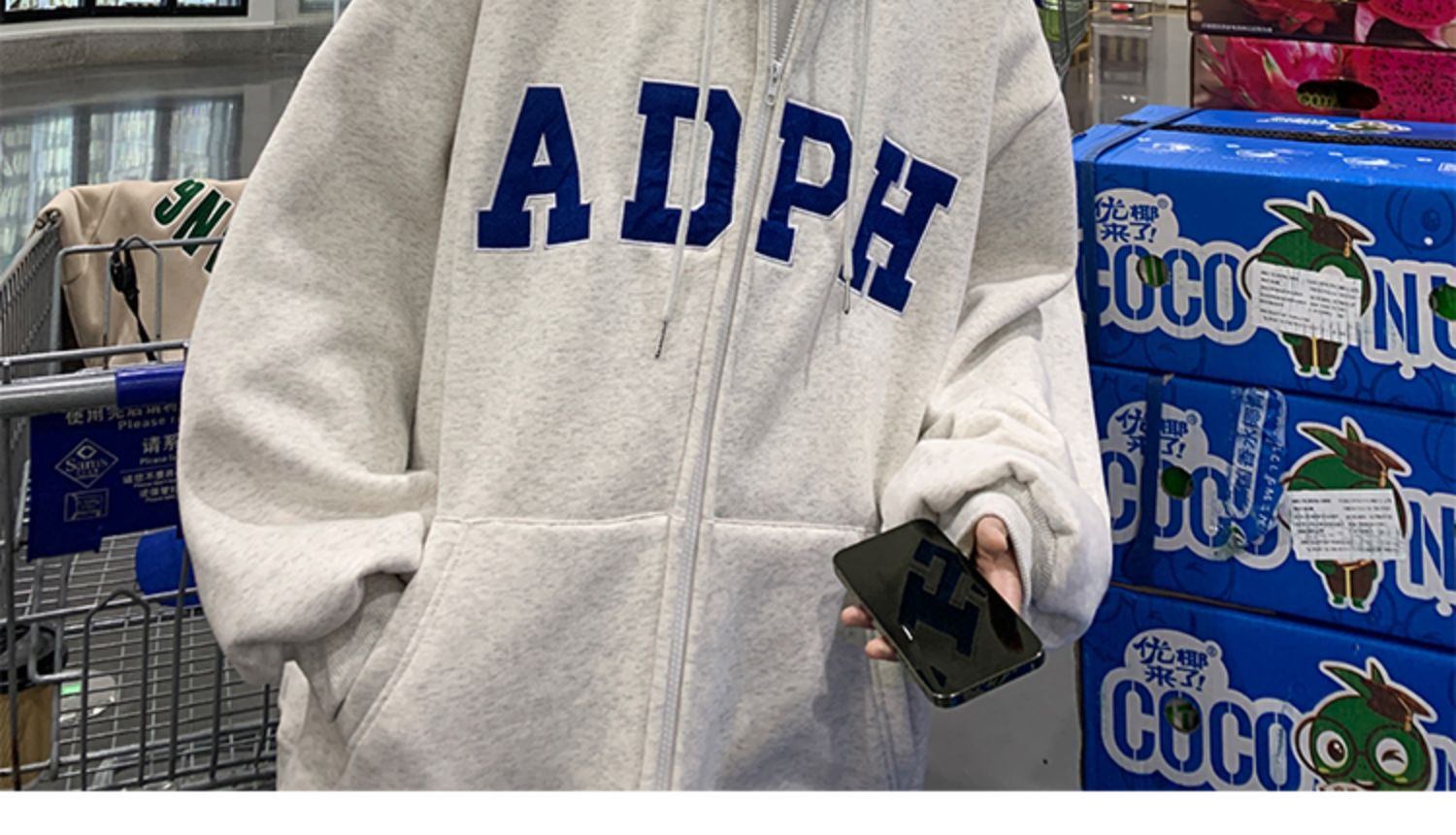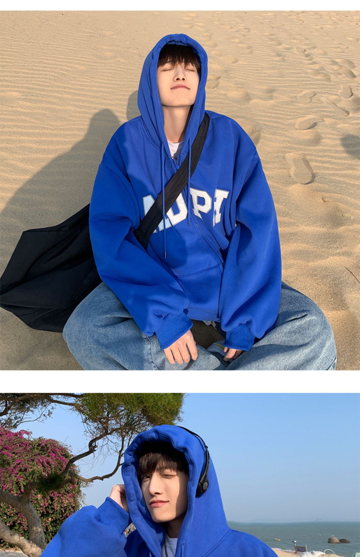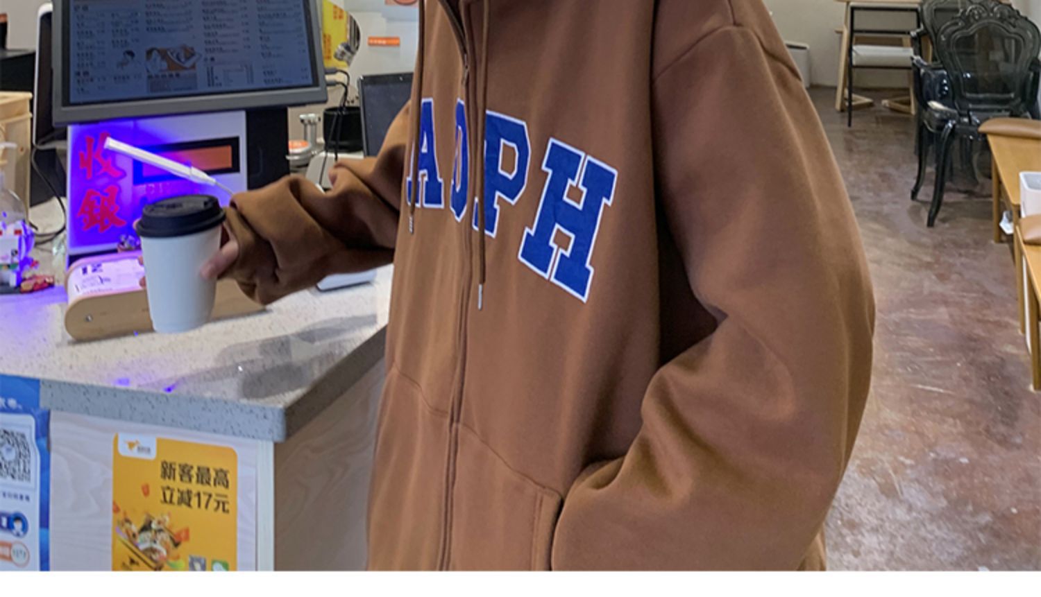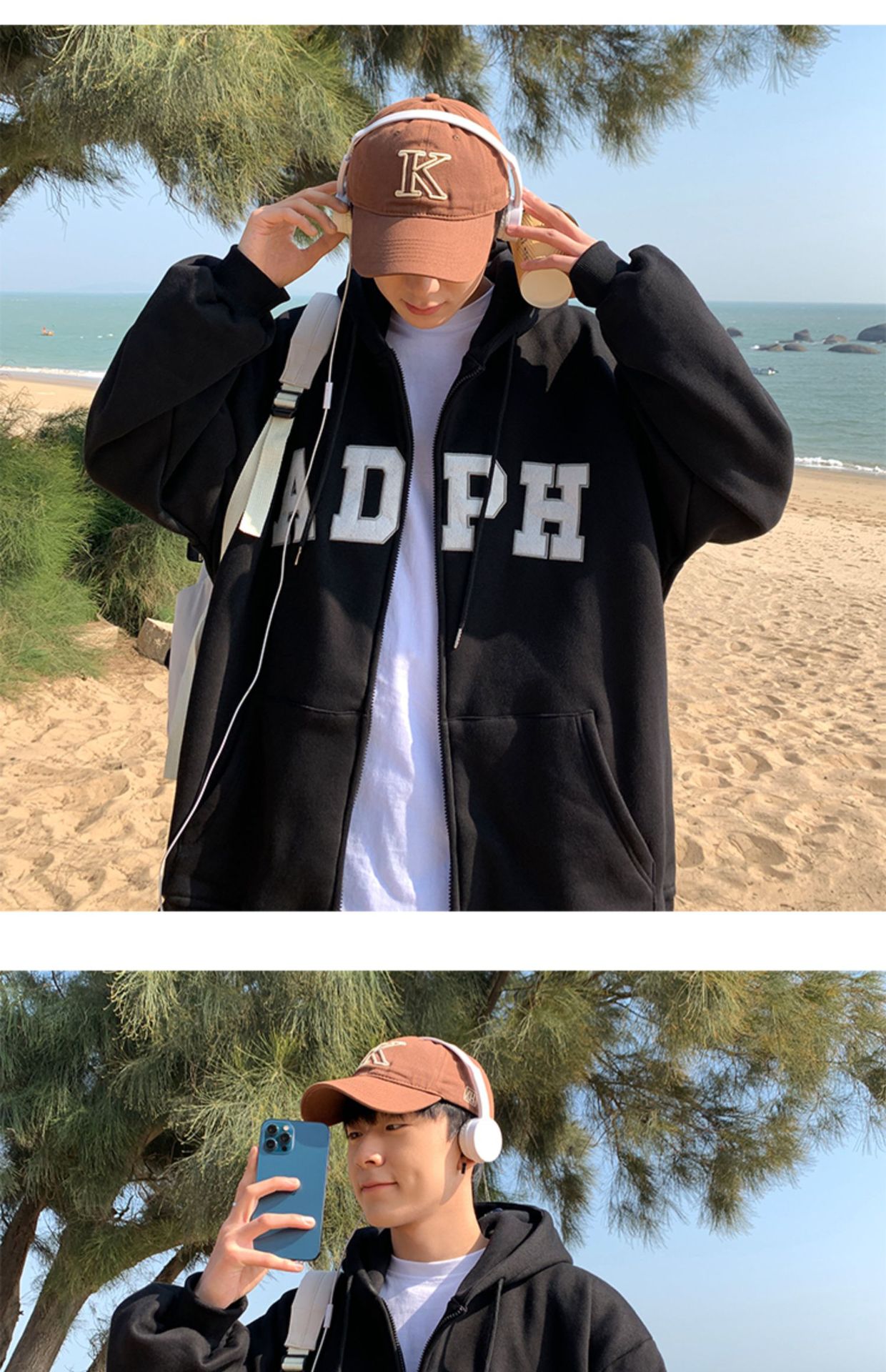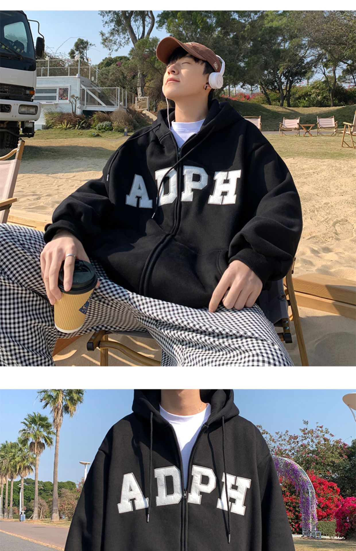 미국 스웨터 코트 남자의 가을과 겨울 패션 브랜드 느슨한 기모 겨울 2024 새로운 후드 지퍼 카디건 옷스토어 가기