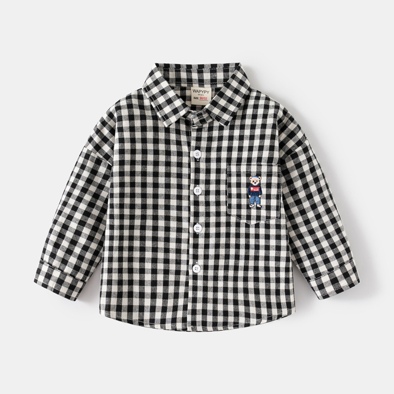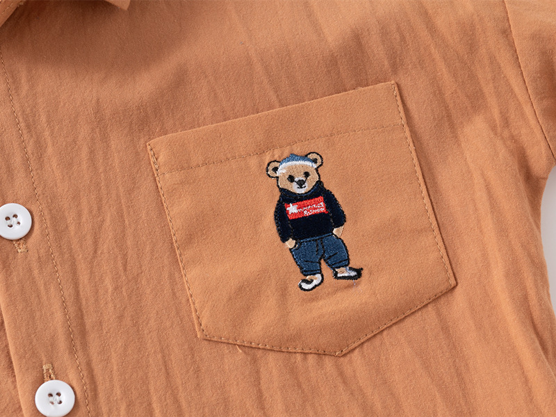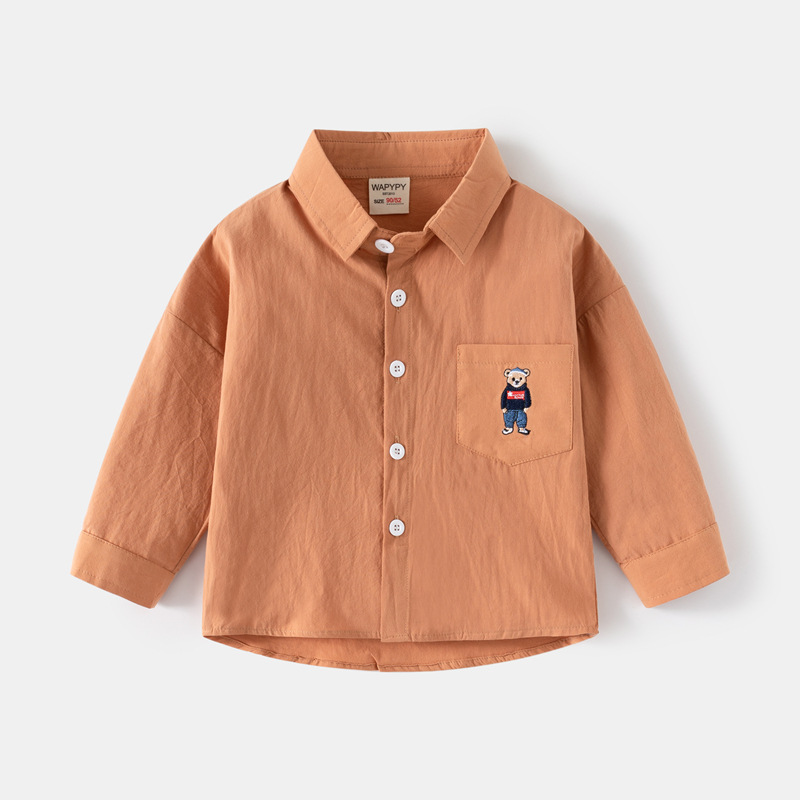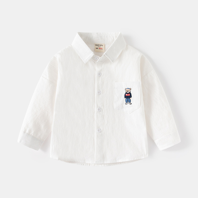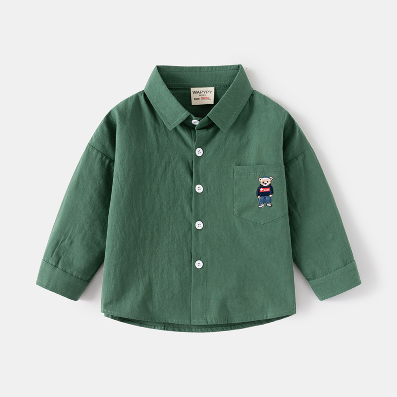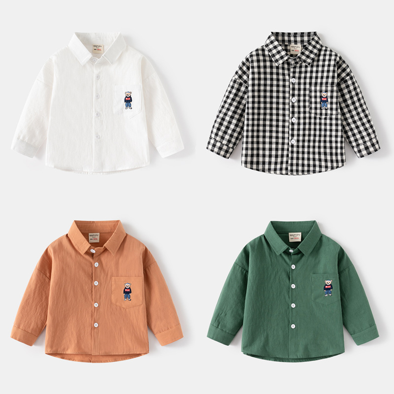 소년 셔츠 도매 봄 새로운 어린이 수 놓은 곰 셔츠 한국어 스타일 아기 긴팔 스퀘어 칼라 작은 셔츠