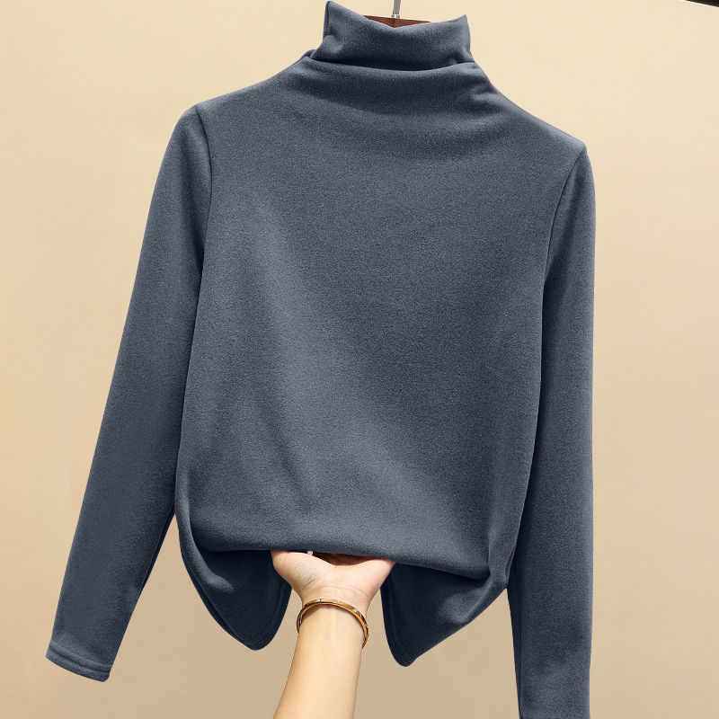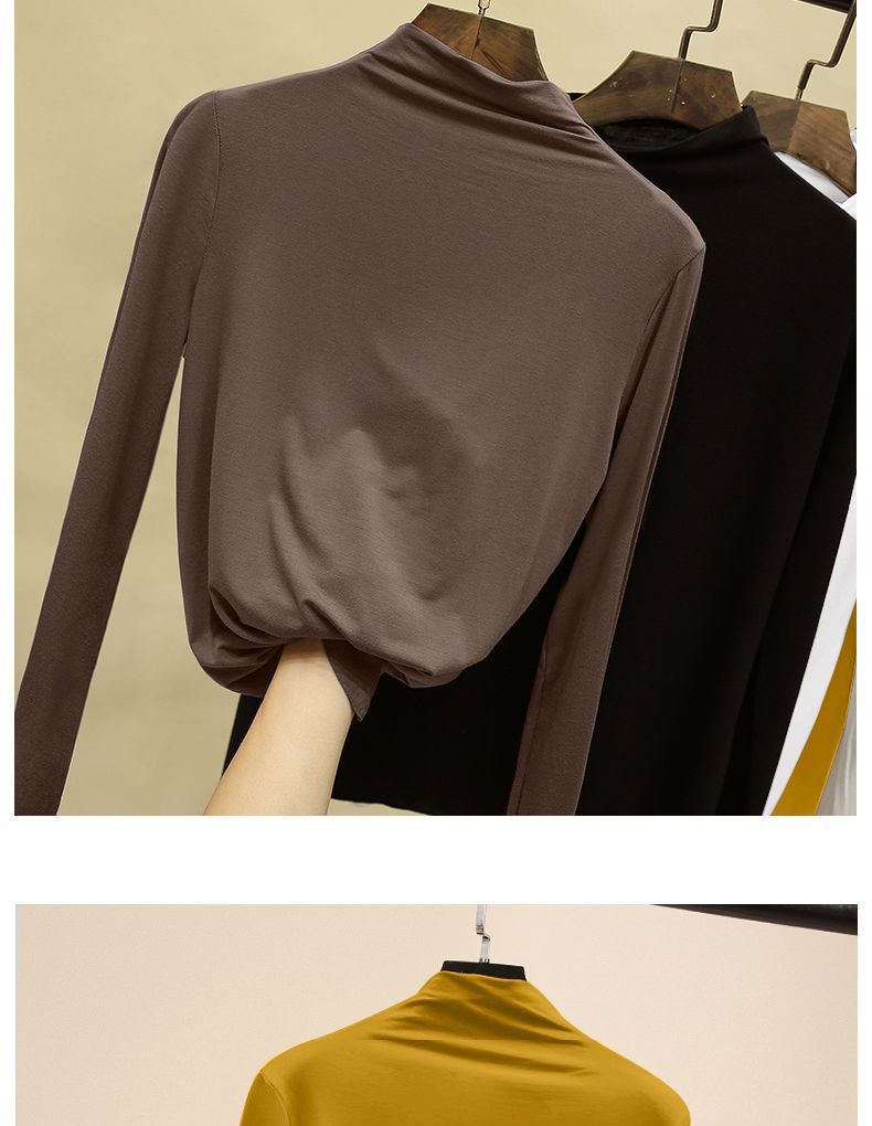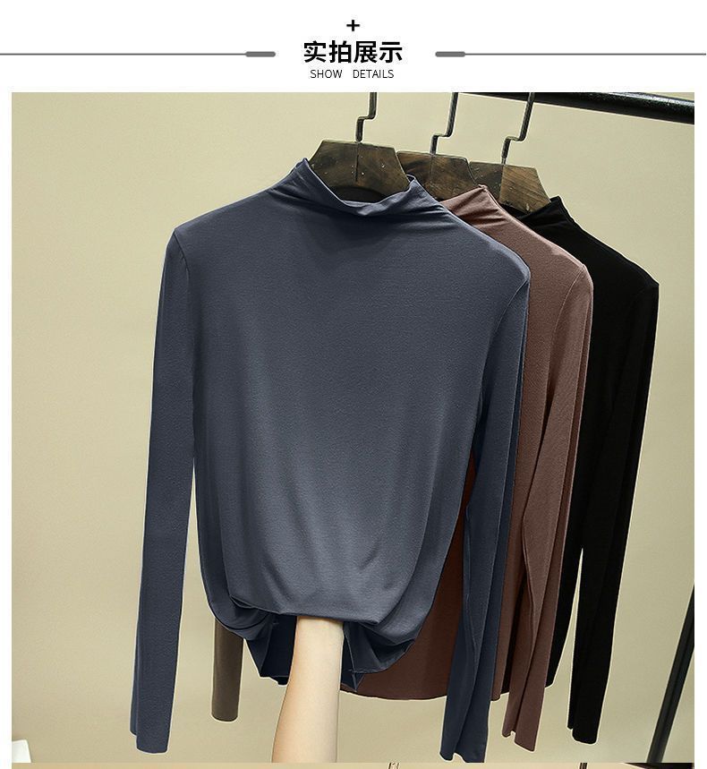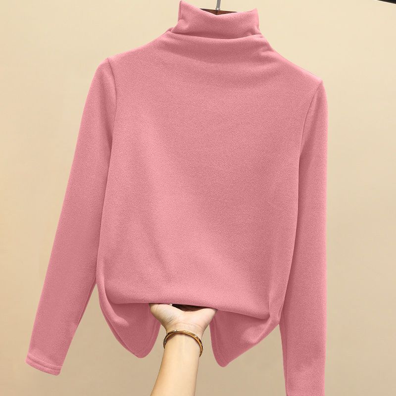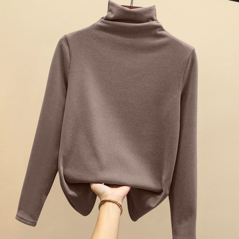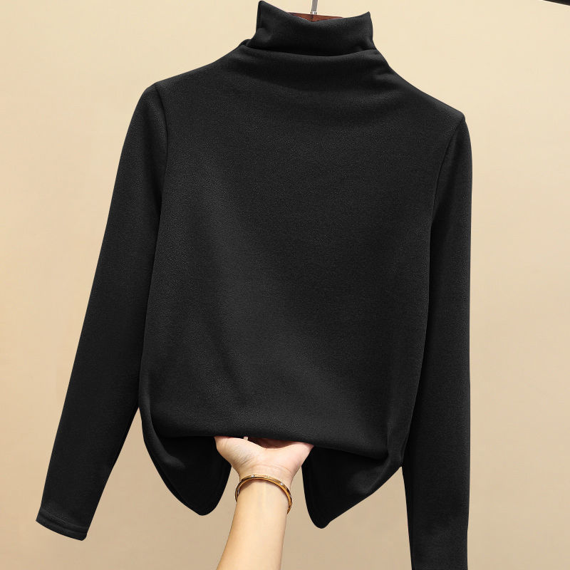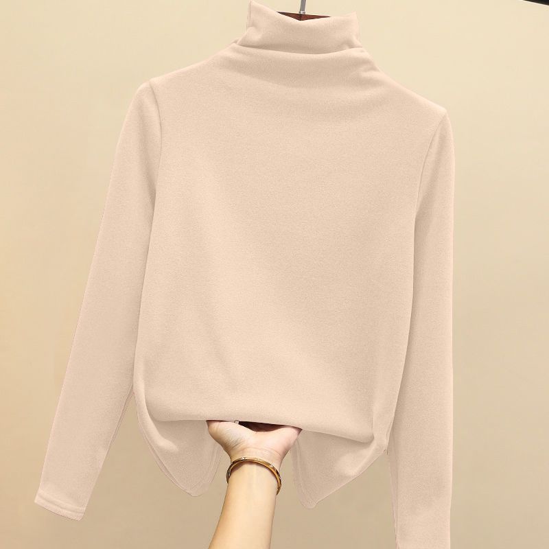 겨울 플러스 두꺼운 벨벳 반 높이 목 슬림 핏 여성베이스 셔츠 2023 새로운 올 매치 샌딩 가열 티셔츠 따뜻한 옷스토어 가기