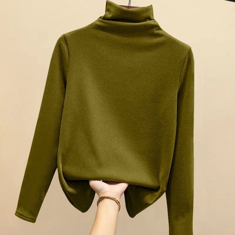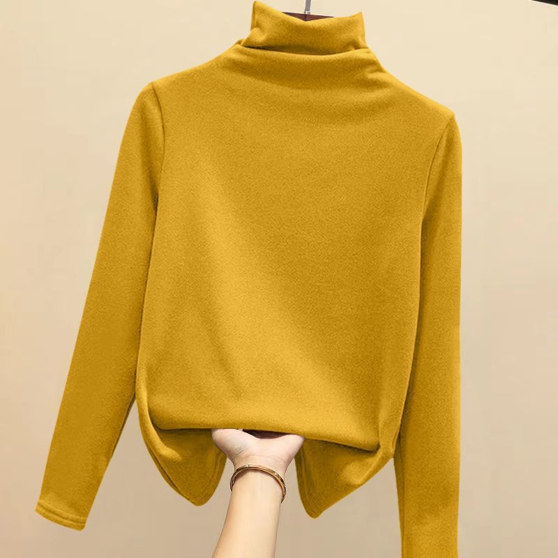 겨울 플러스 두꺼운 벨벳 반 높이 목 슬림 핏 여성베이스 셔츠 2023 새로운 올 매치 샌딩 가열 티셔츠 따뜻한 옷