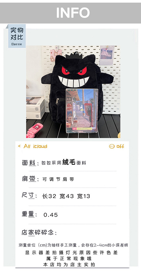 2026년 신형 겐키 보라색 플러시 백팩, 커플, 남녀 학생용, 만화 애니메이션 백팩, 대용량스토어 가기