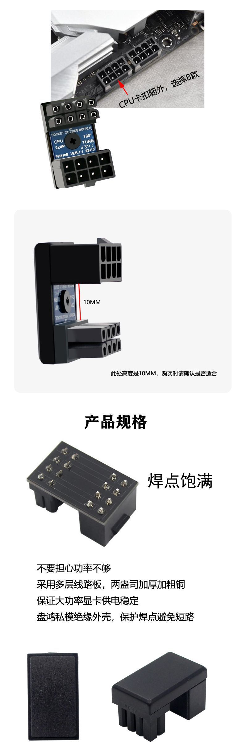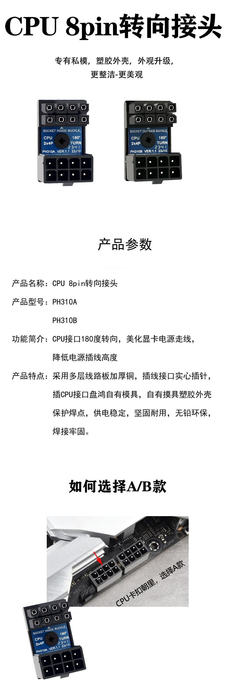 CPU 전원 180 도 스티어링 커넥터 8P 터닝 장치 섀시 배선 미화 CPU 배선 문제 PH310