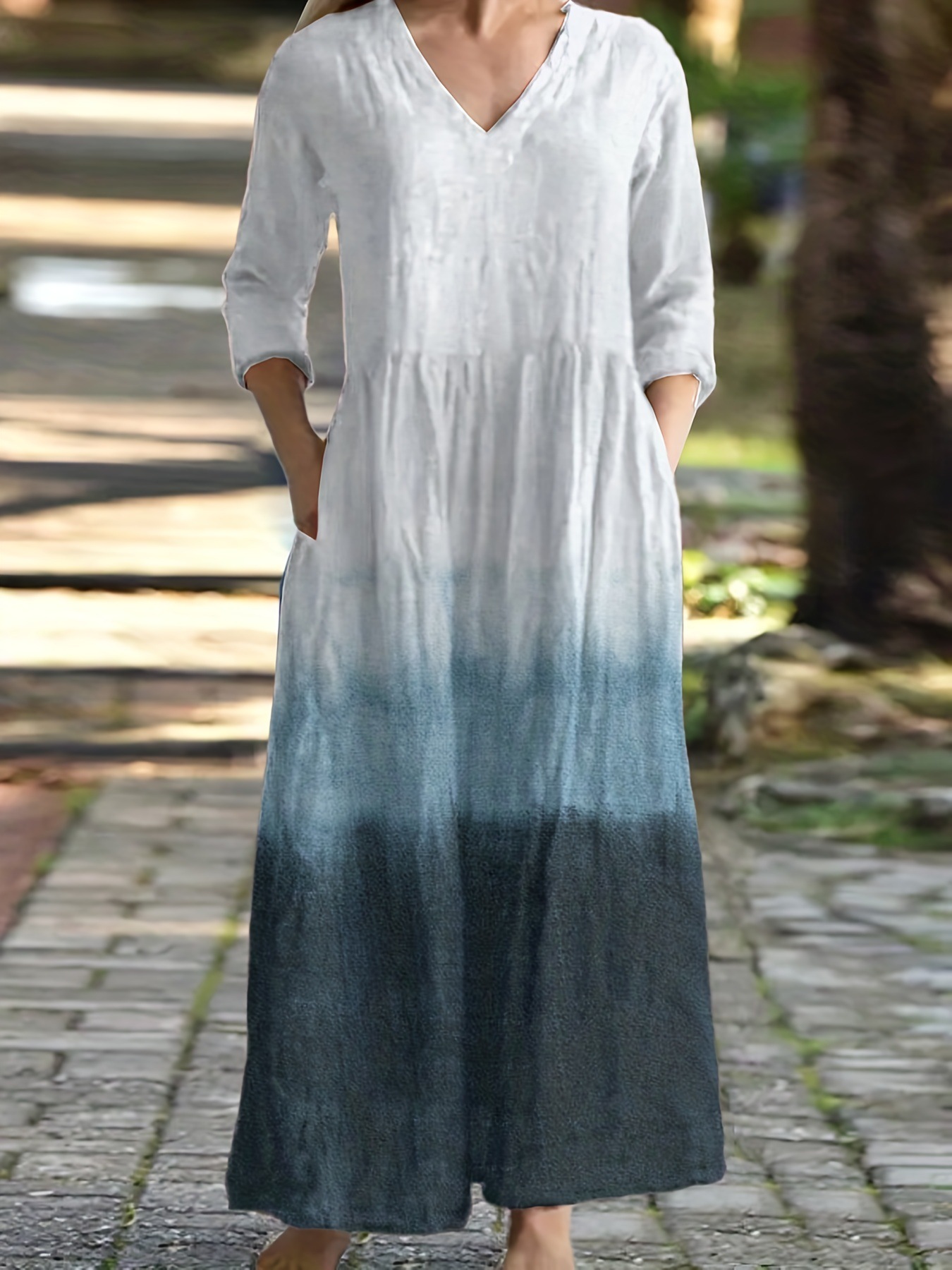 유럽과 미국의 가을 프린트 브이넥 캐주얼 롱 프린트 원피스 레트로 유럽과 미국 스타일