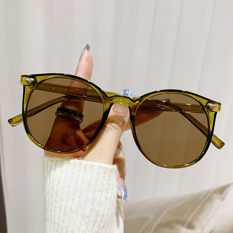 2024 인터넷 유명 인사 간단한 얼굴 모양의 작은 장식 선글라스 라운드 프레임 대학 스타일 귀여운 태양 방지 선글라스 공장 직접 공급스토어 가기