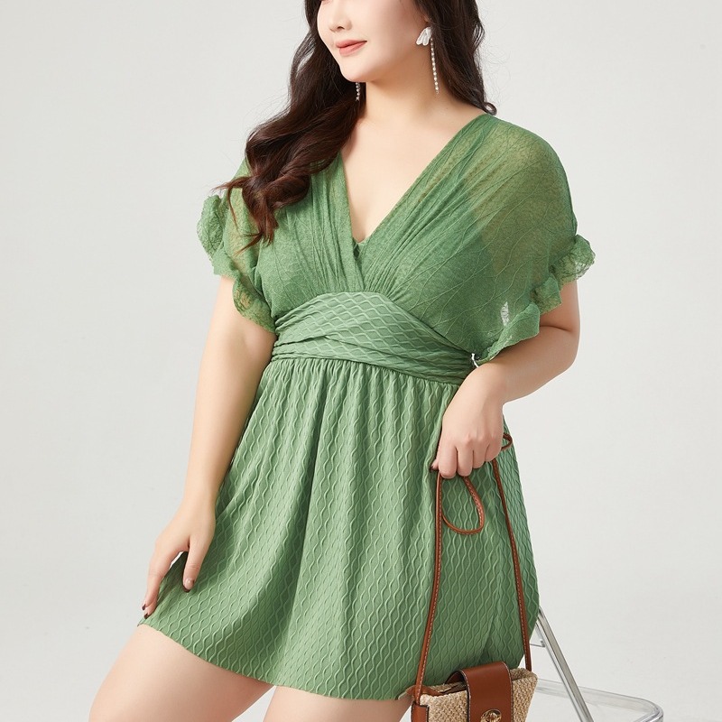 플러스 사이즈 수영복 여성 원피스 보수 통통녀 온천 배꼽-슬리밍 보수 고기-커버 레이스 플랫 앵글 수영복스토어 가기