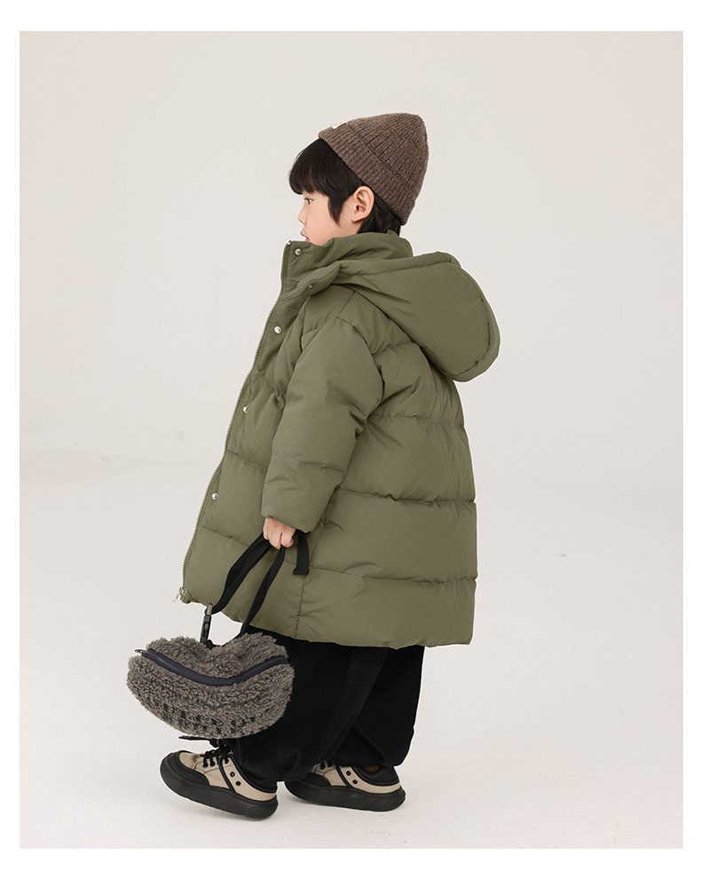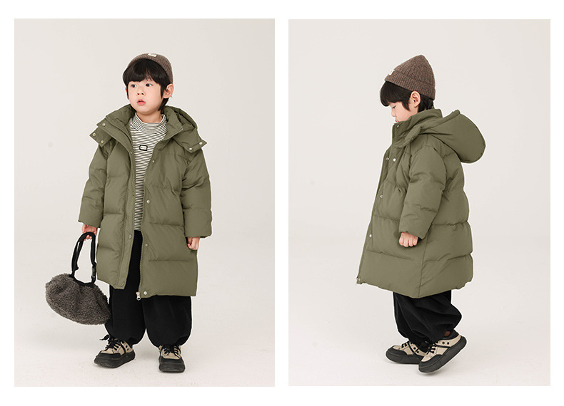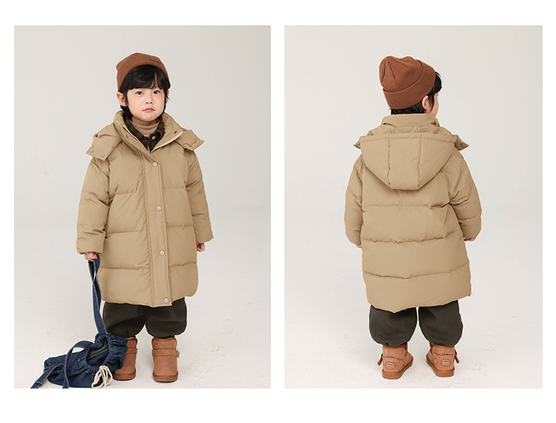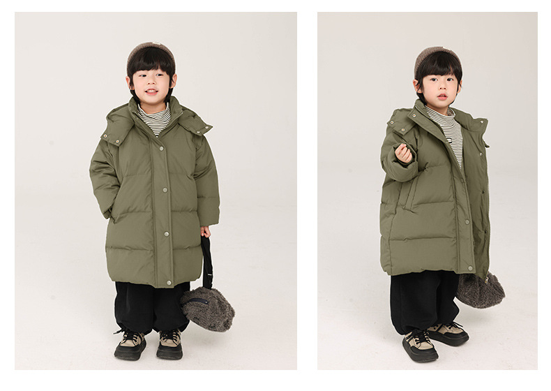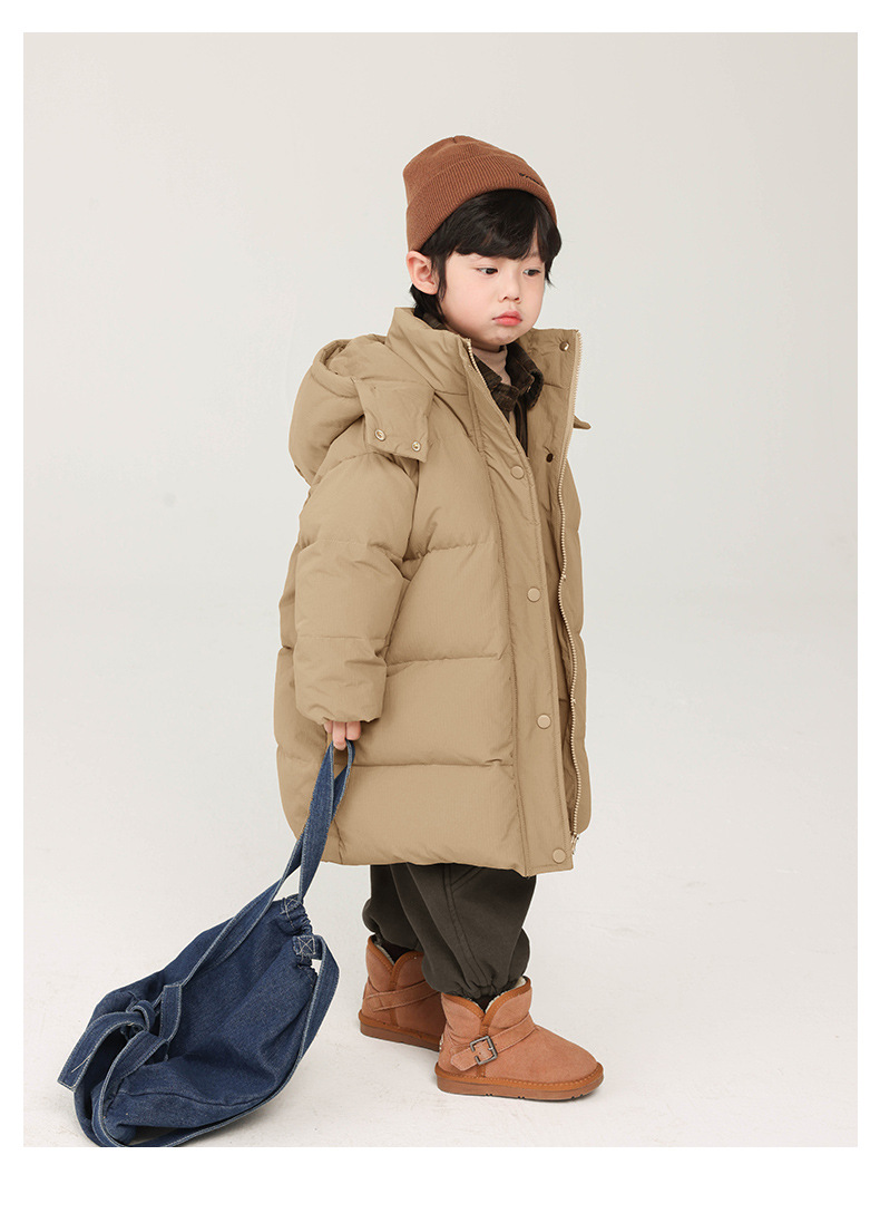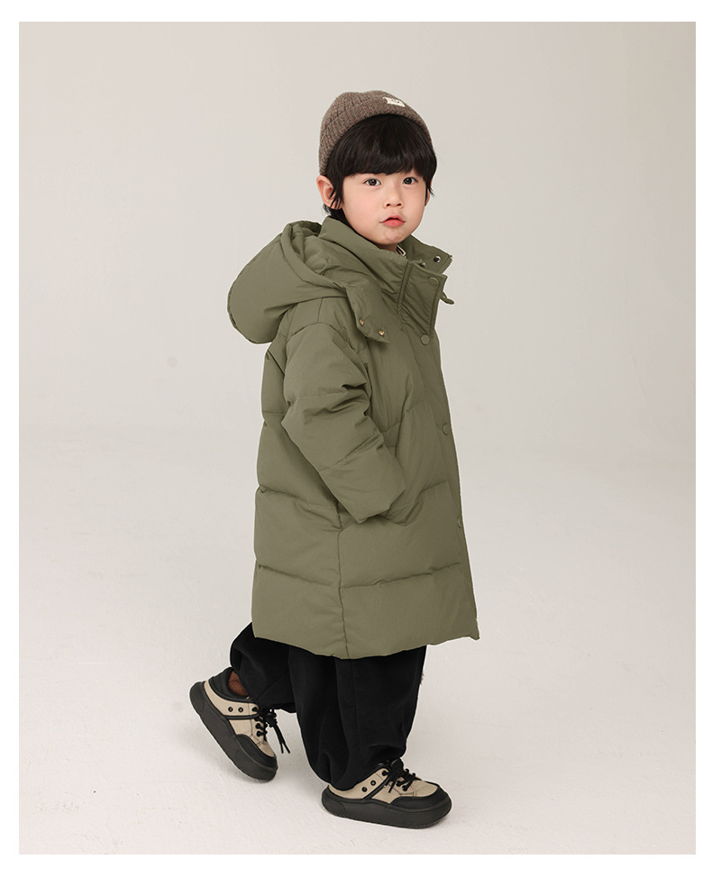 창구 아동복 소년 다운 재킷 긴 겨울 의류 어린이 한국식 흰색 오리 다운 후드 재킷