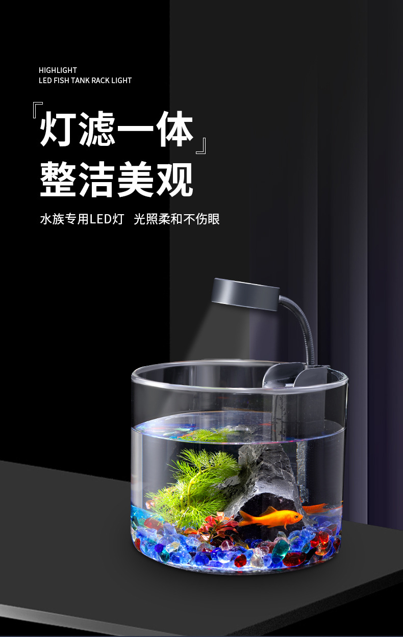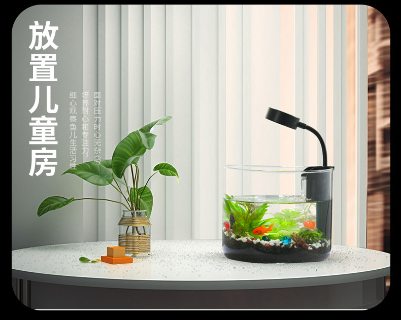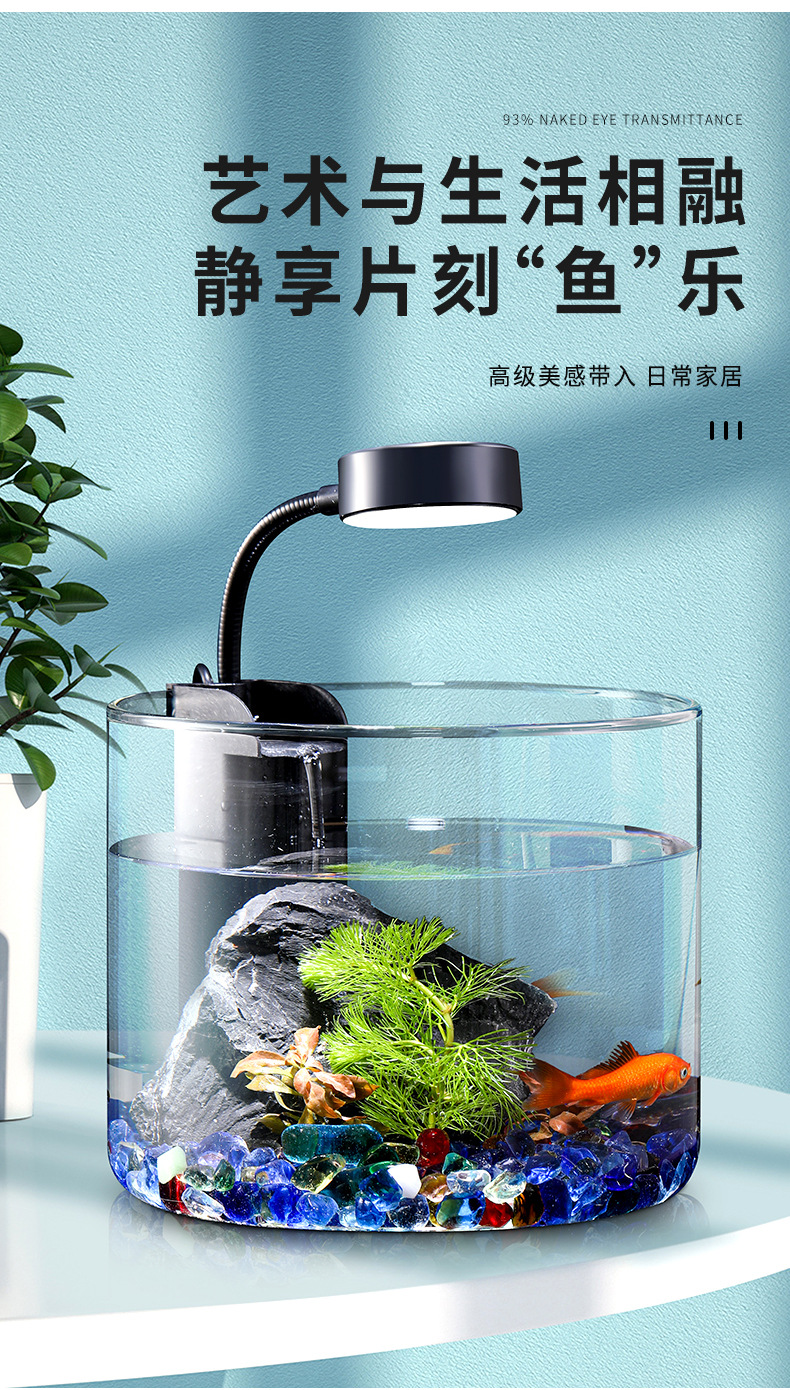 데스크탑 어항 미니 유리 어항 자체 순환 생태 실린더 풍경보기 물고기 탱크 공작 양동이 수조스토어 가기