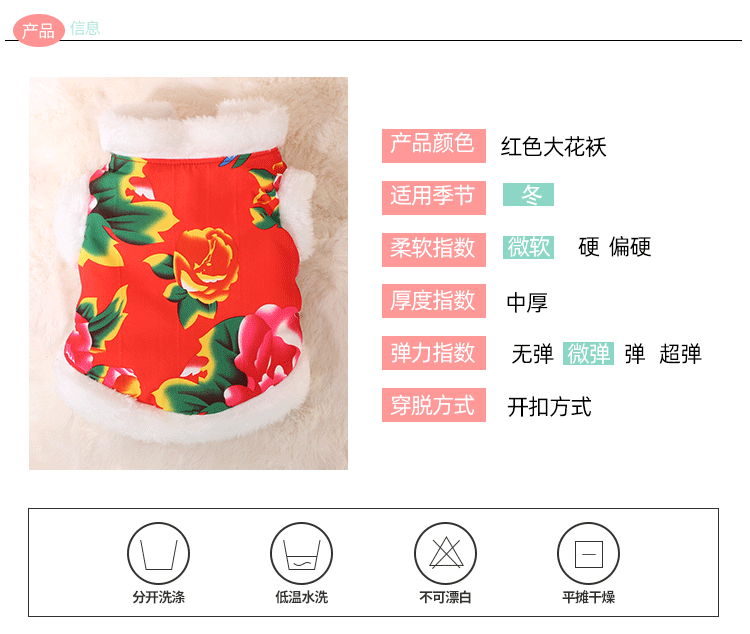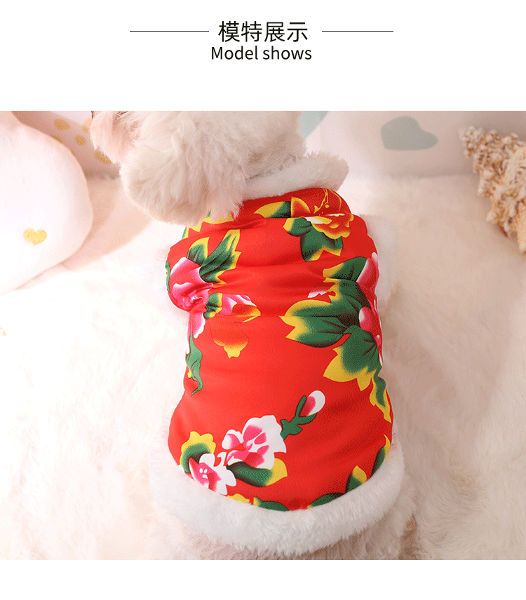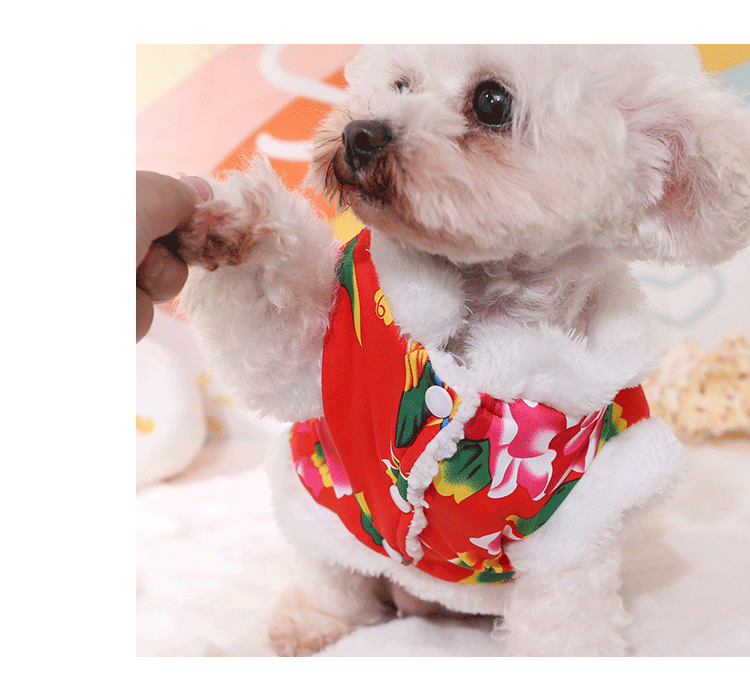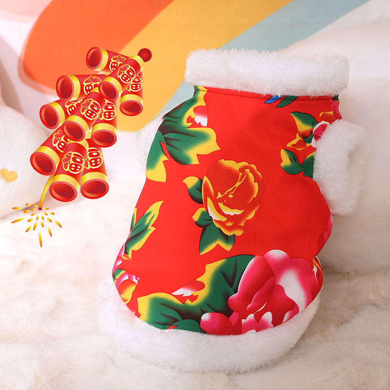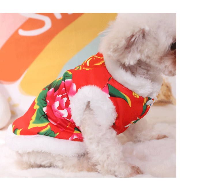 개 새해 옷 테디 베어 축제 북동쪽 큰 꽃 자켓면 패딩 옷 애완 동물 작은 개 고양이 옷 겨울 옷스토어 가기