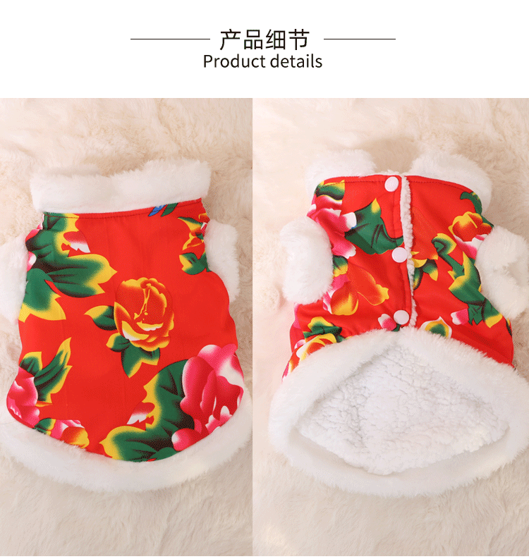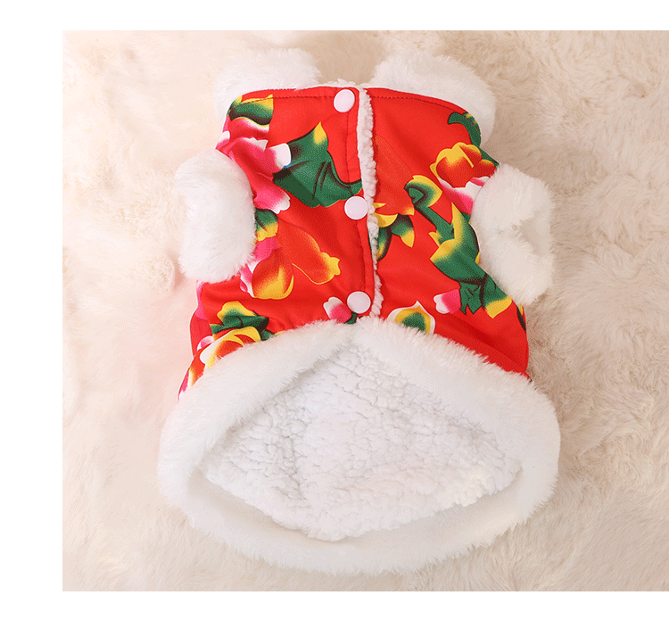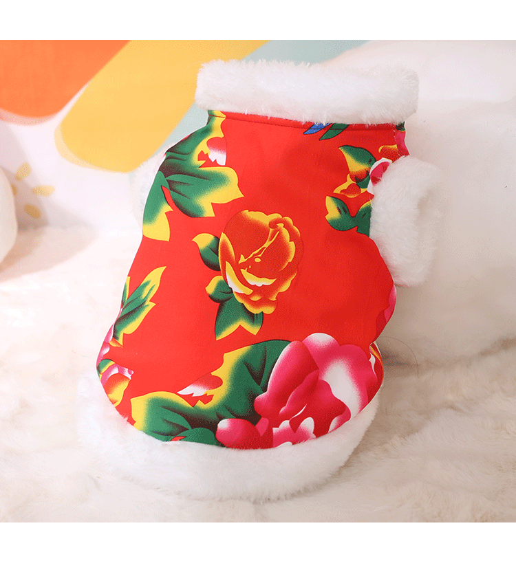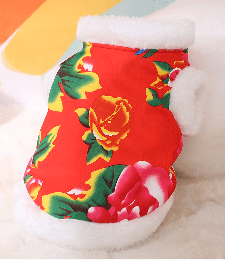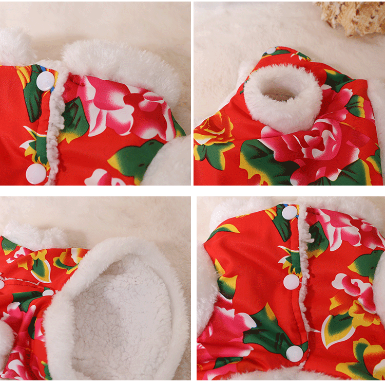 개 새해 옷 테디 베어 축제 북동쪽 큰 꽃 자켓면 패딩 옷 애완 동물 작은 개 고양이 옷 겨울 옷
