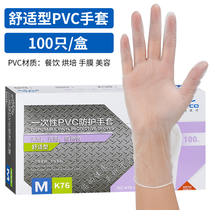 • K76-가벼운 편안한 식품등급 PVC장갑 1박스-100개-M사이즈