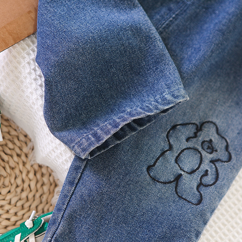 2024 봄 새 소년 캐주얼 스웨터 조끼 긴 소매 3 피스 세트 아기 소년의 데님 바지 세트 세대 헤어