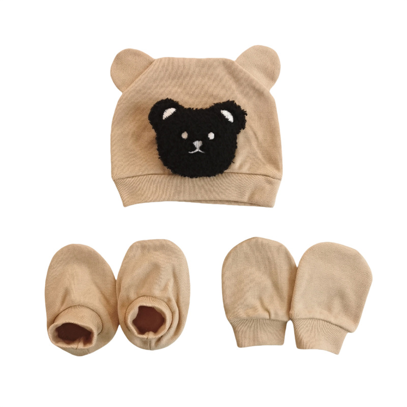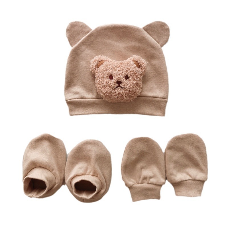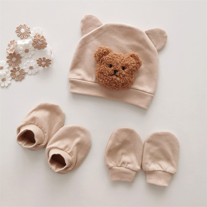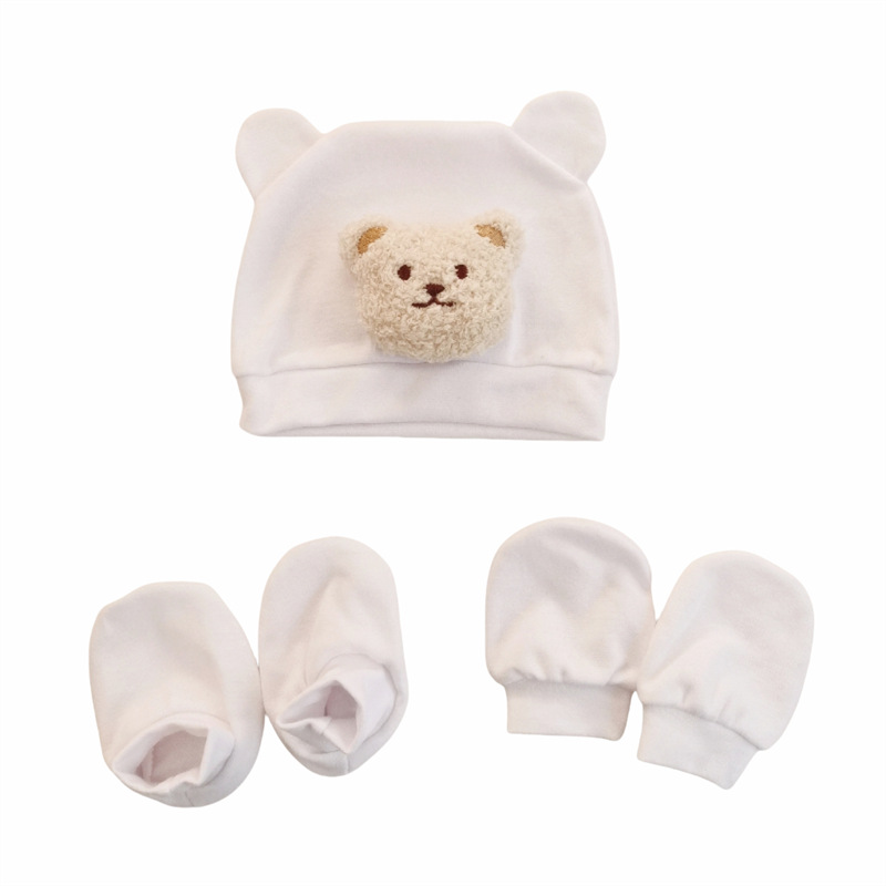 韩版ins风 新生儿小熊耳朵胎帽+防抓手套+脚套