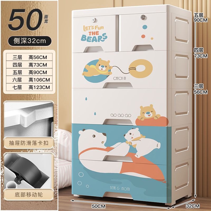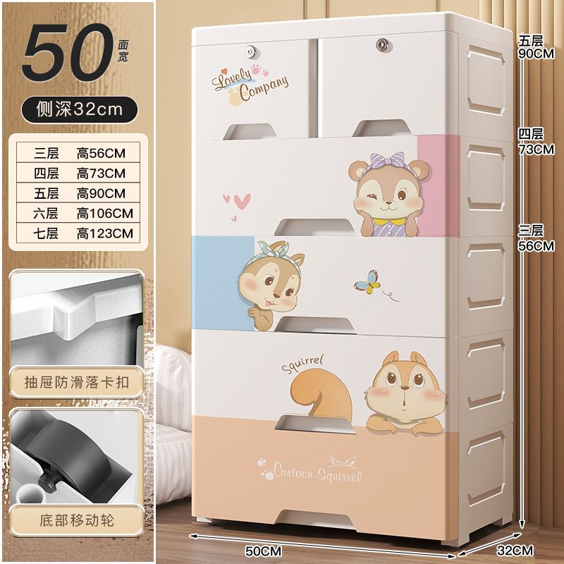 두꺼운 보관 캐비닛 사물함 50cm 너비 플라스틱 저장 상자 가정용 보관 강화 서랍 어린이 옷장