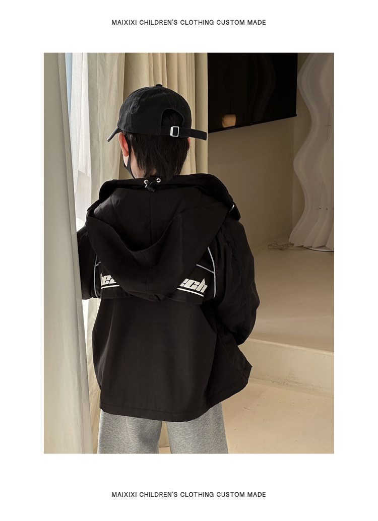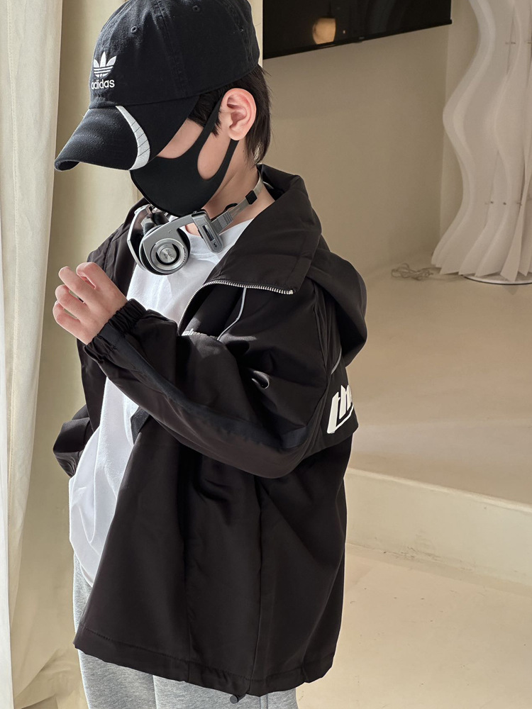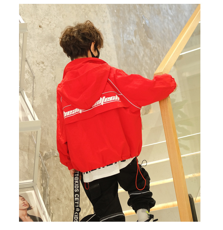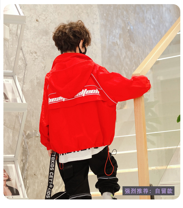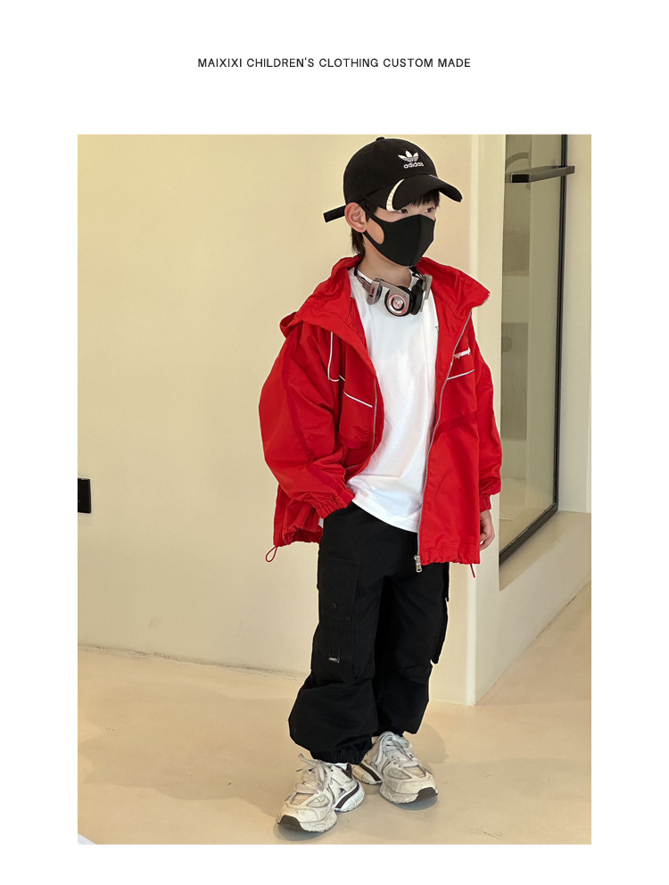 소년 재킷 봄과 가을의 새로운 방풍 어린이 트렌치 코트 2024 빨간 후드 미디어와 큰 어린이 재킷 소년 재킷스토어 가기