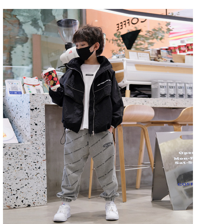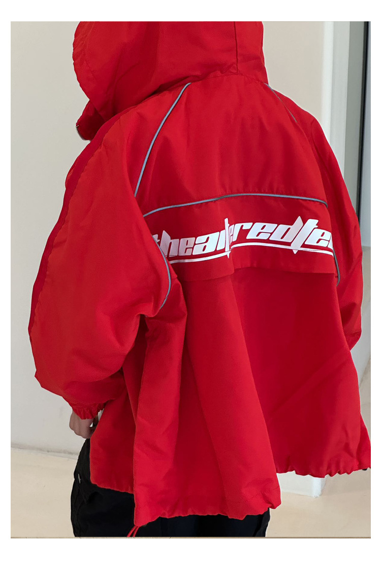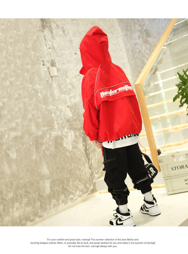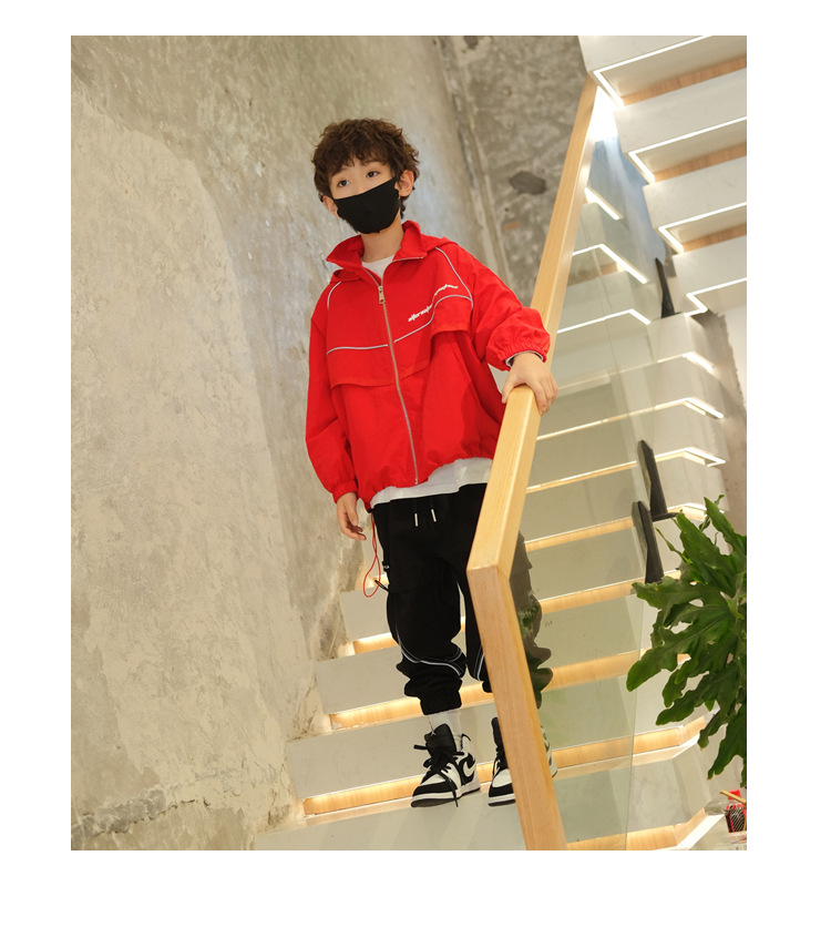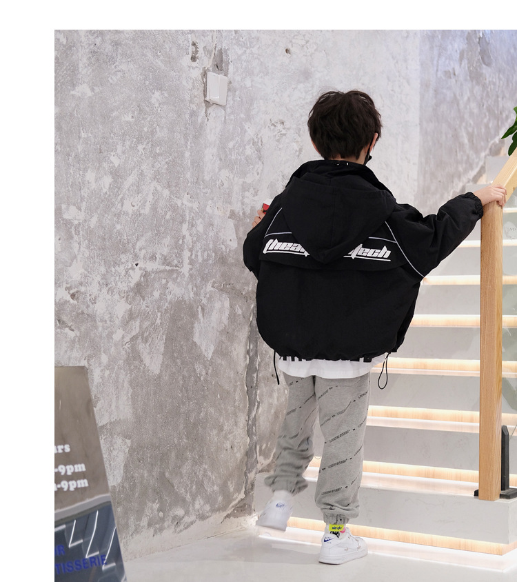 소년 재킷 봄과 가을의 새로운 방풍 어린이 트렌치 코트 2024 빨간 후드 미디어와 큰 어린이 재킷 소년 재킷스토어 가기