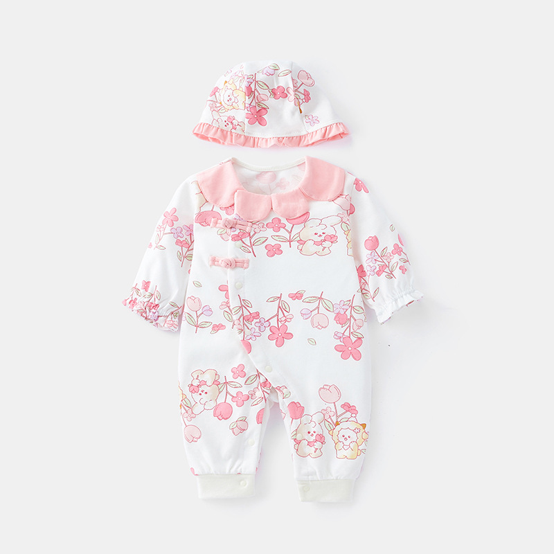 아기 면화 점프 수트 2024 아기 소녀 봄 새로운 Romper 신생아 봄과 가을 긴 소매 점프 수트 3518