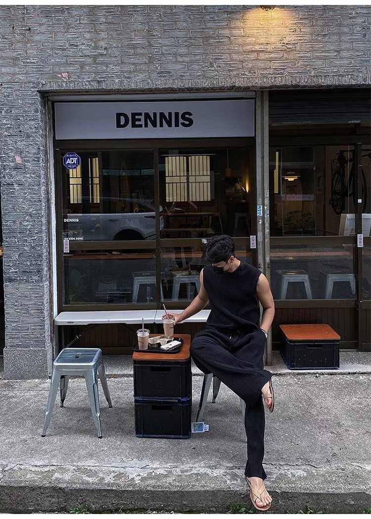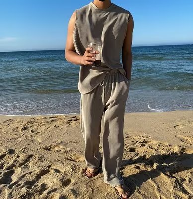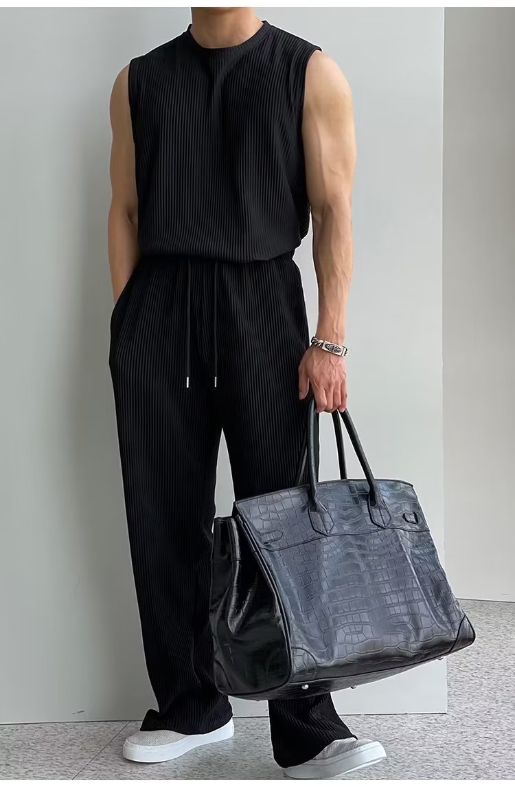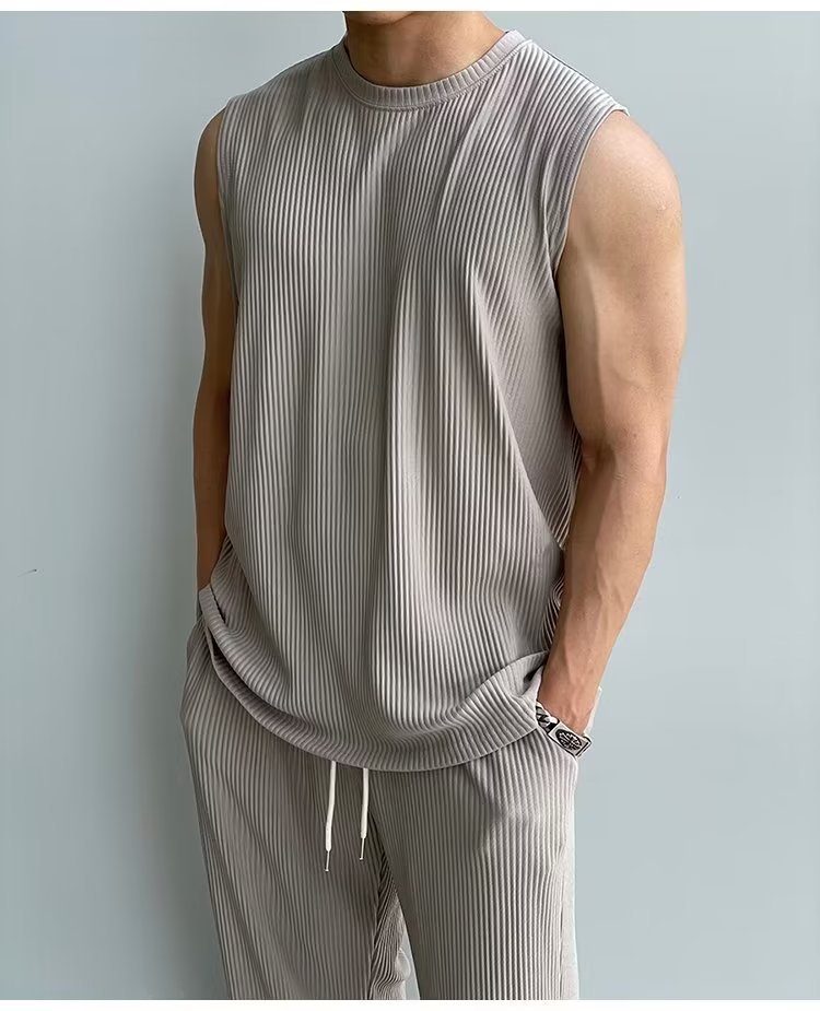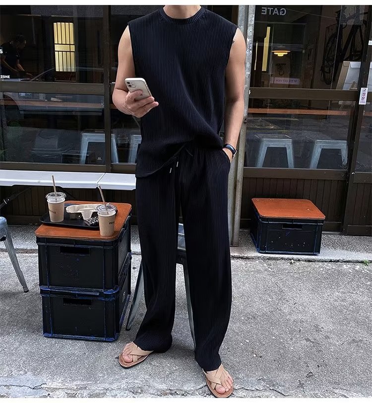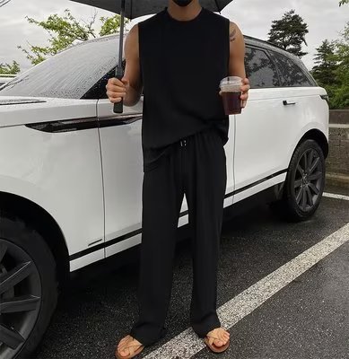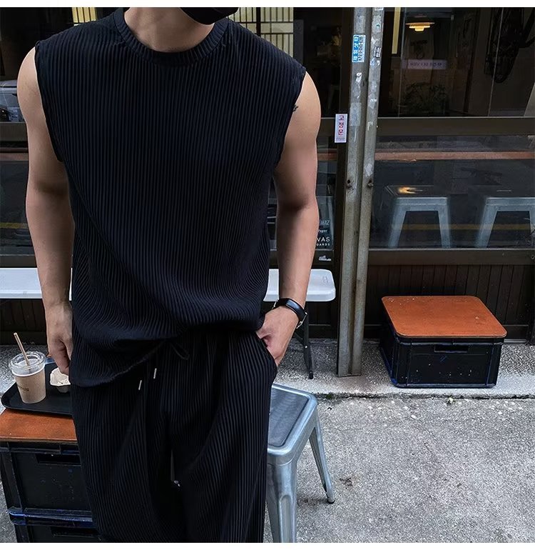 여름 솔리드 컬러 웨이스트 코트 빠른 건조 통기성 얇은 스레드 아이스 실크 탑 민소매 세트 피트니스 느슨한 남성스토어 가기