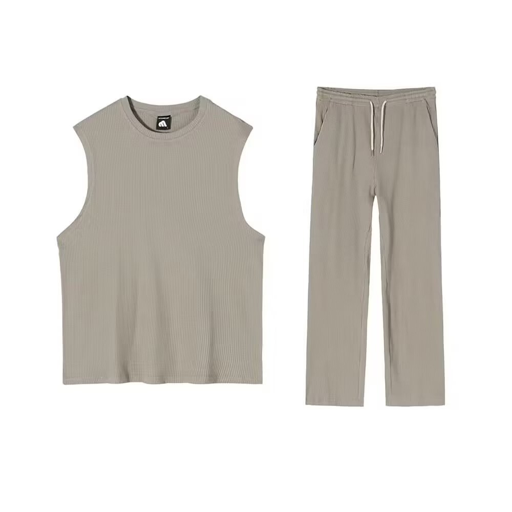 여름 솔리드 컬러 웨이스트 코트 빠른 건조 통기성 얇은 스레드 아이스 실크 탑 민소매 세트 피트니스 느슨한 남성