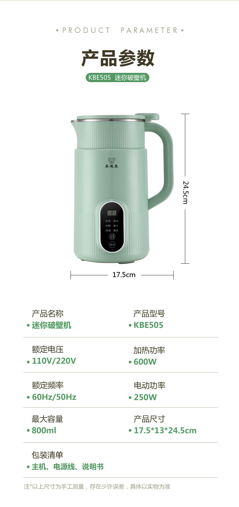 110V美规小型豆浆机家用免过滤多功能迷你榨汁辅食米糊自动破壁机