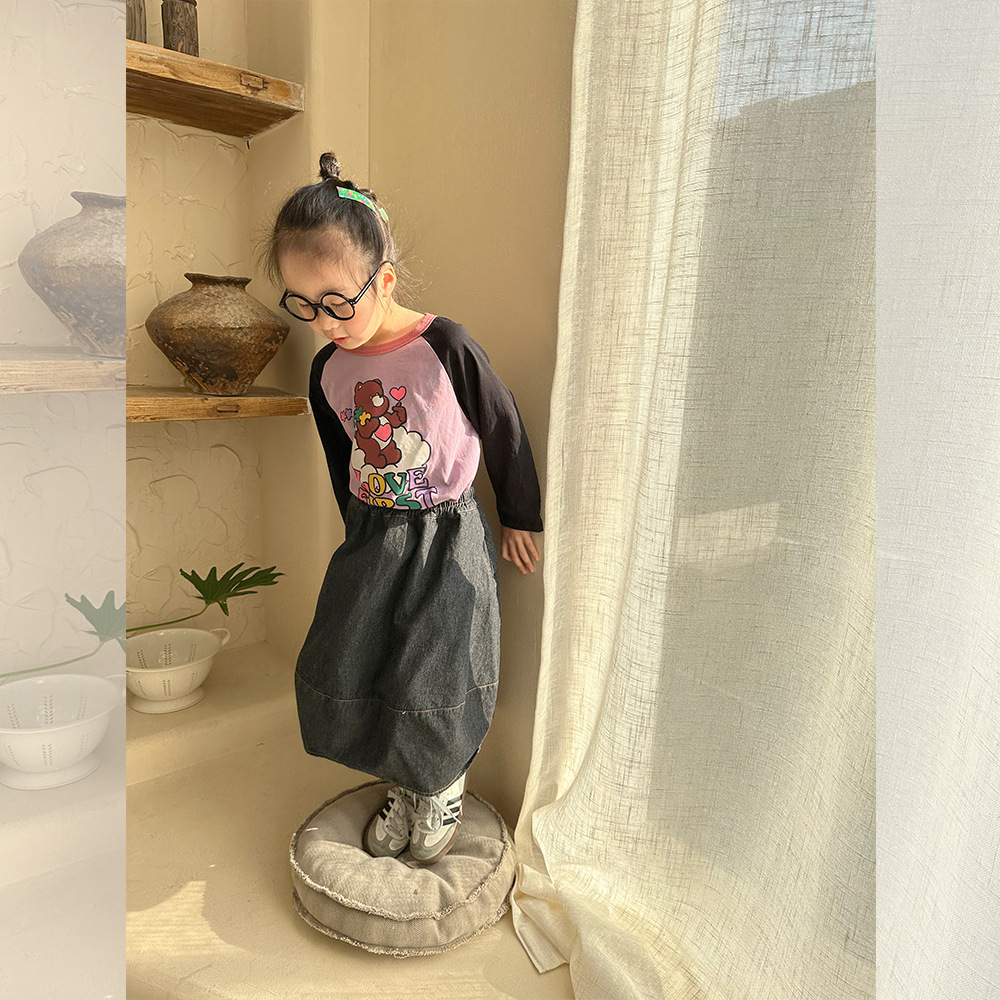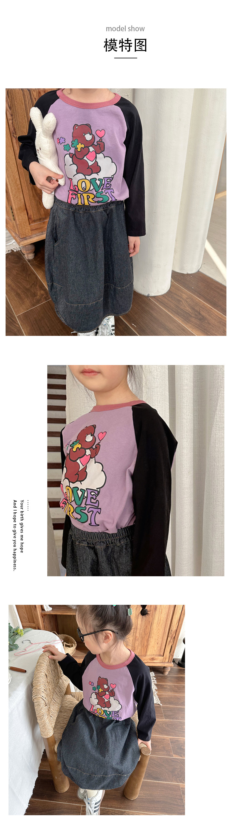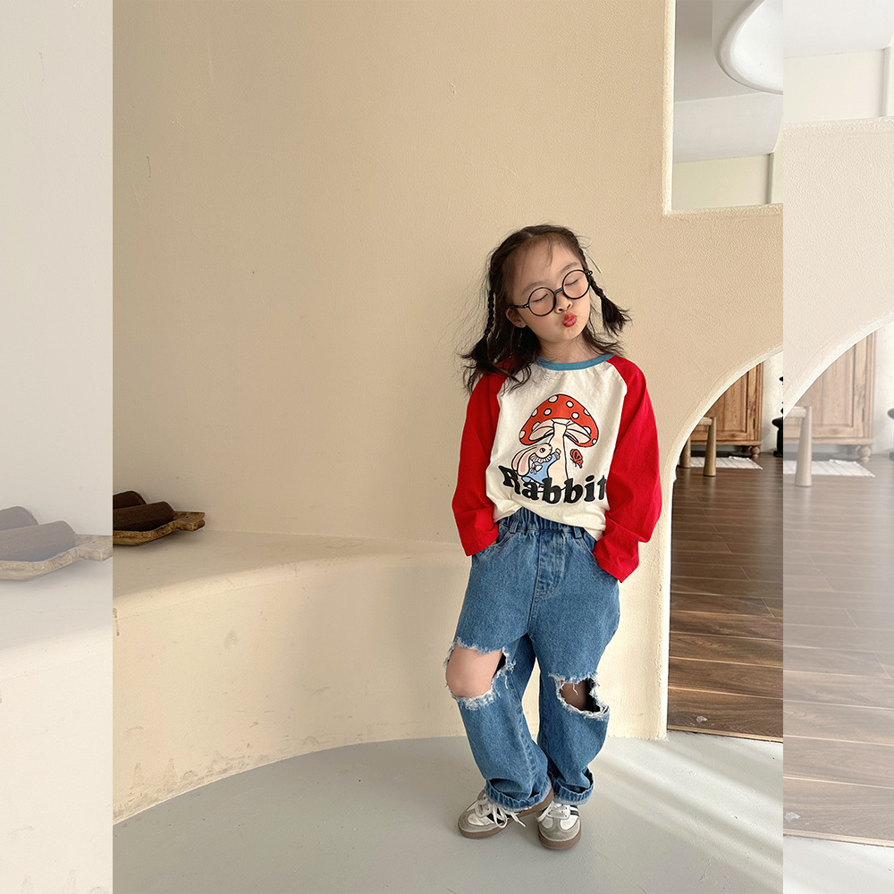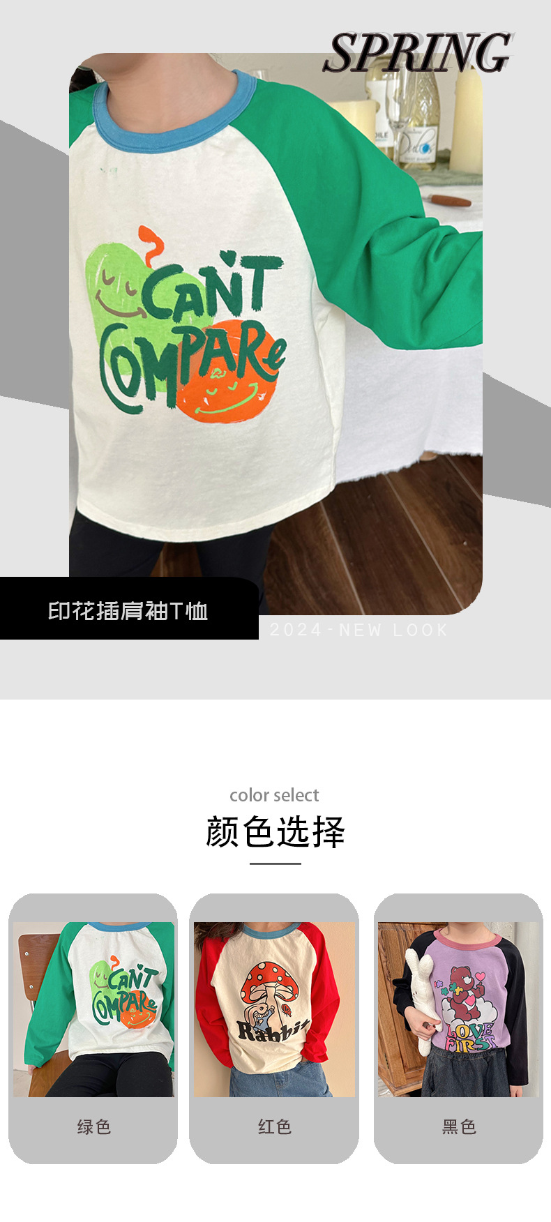 Zuoxiaoran 아동복 2024 봄, 가을 새로운 한국어 버전 아동용 긴팔 만화 프린트 티셔츠 소년 소녀 라글란 슬리브 T