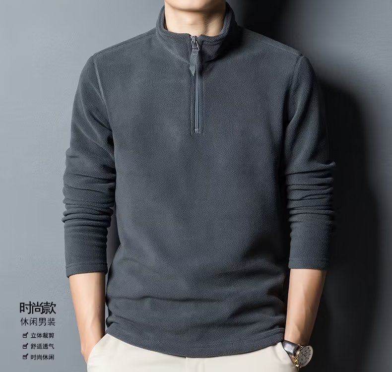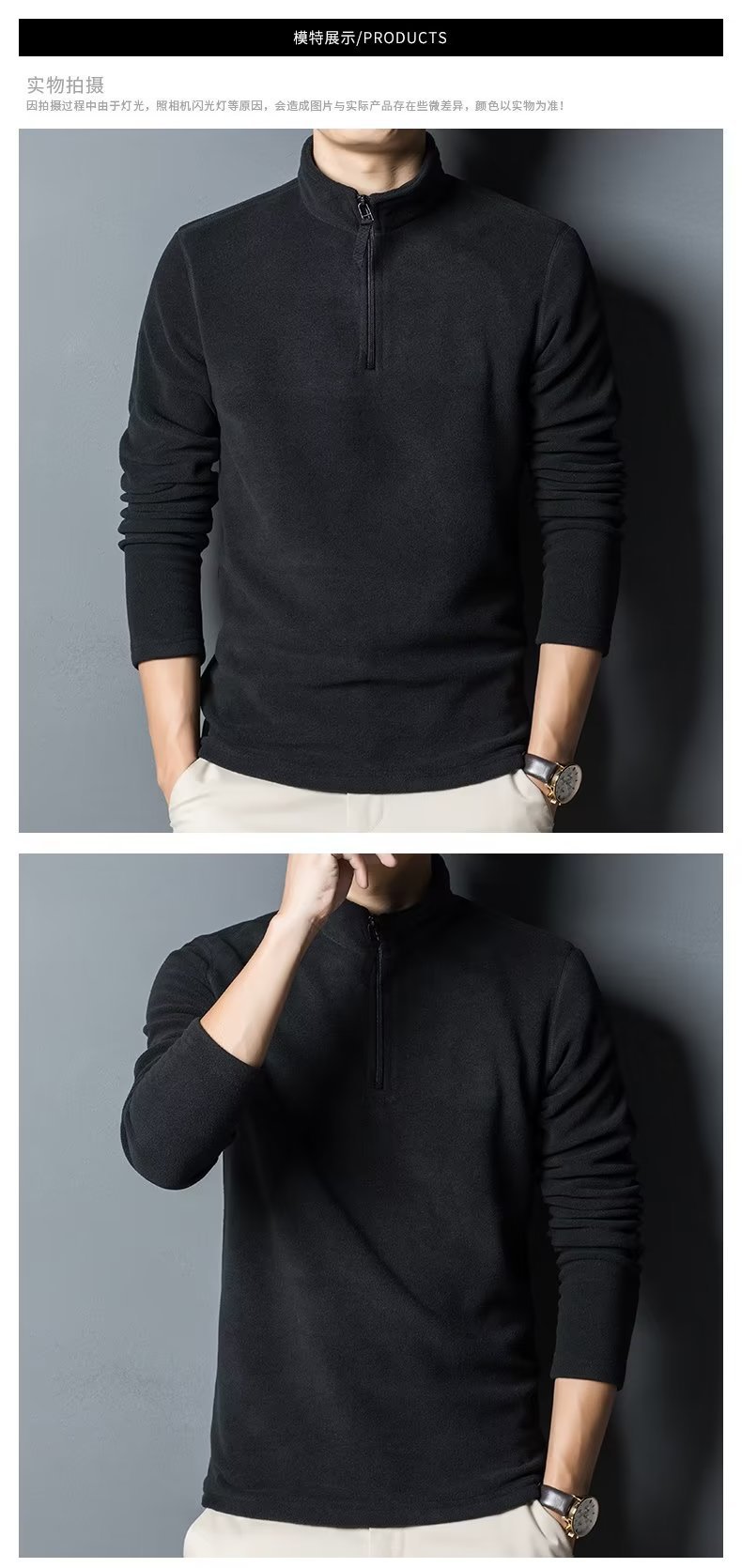 가을과 겨울 젊은 남성 캐주얼 양면 벨벳 스탠드 칼라 지퍼 상단 겉옷 기모 두꺼운 열 속옷은 외부에서 착용 할 수 있습니다.스토어 가기