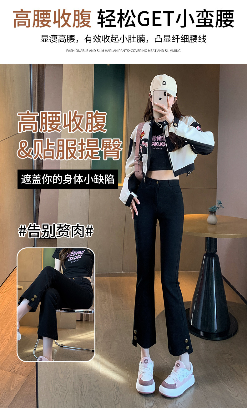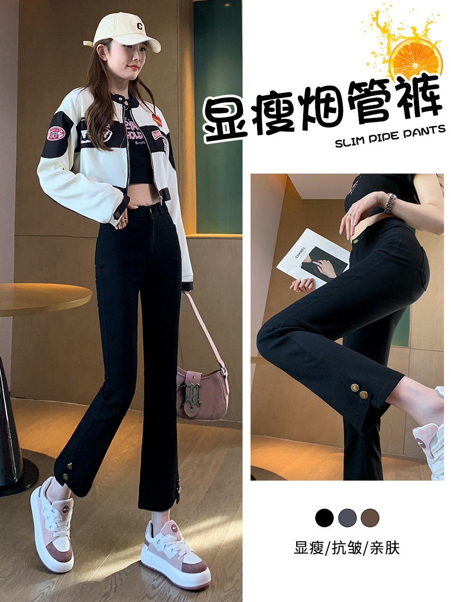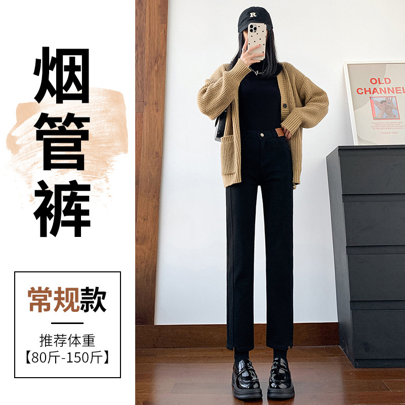 검은 연기 튜브 바지 여성의 봄과 가을 데님 여성 바지 새로운 2024 폭발 작은 9 분할 스트레이트 배럴 바지