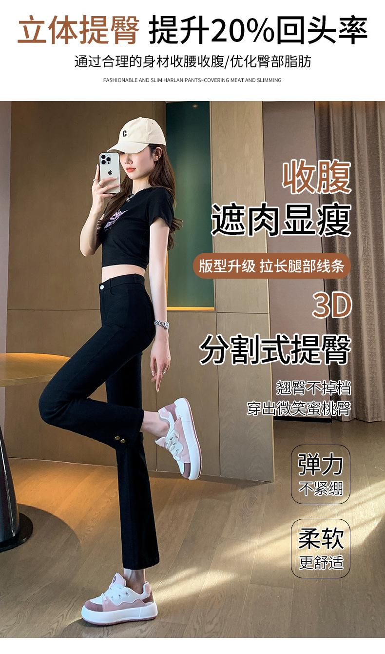 • 더블 버튼 마이크로 팬츠 [블랙]]