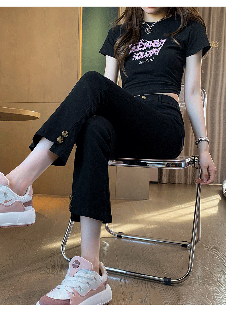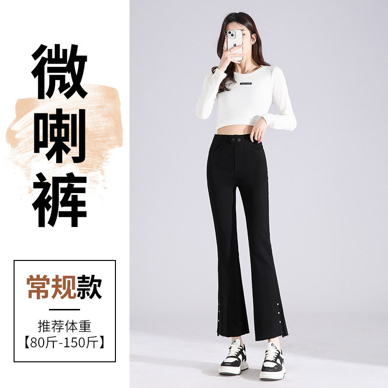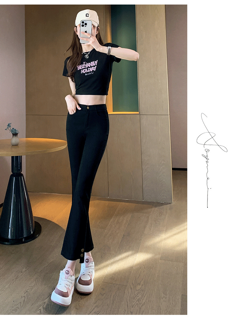 • 벨벳 레터 마이크로 플레어 팬츠 [블랙 나인포인트]