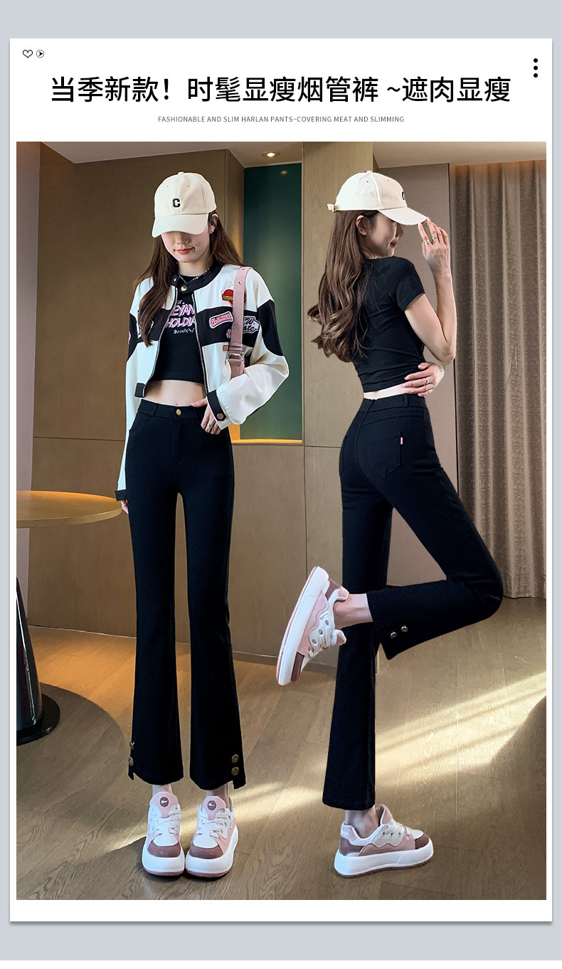 검은 연기 튜브 바지 여성의 봄과 가을 데님 여성 바지 새로운 2024 폭발 작은 9 분할 스트레이트 배럴 바지스토어 가기