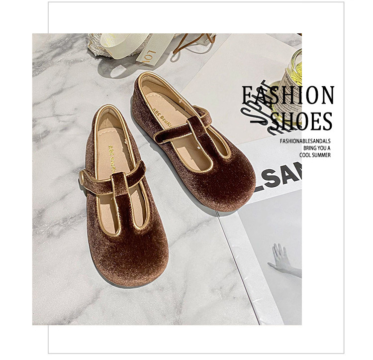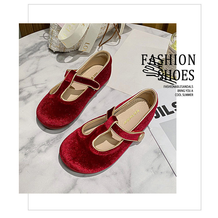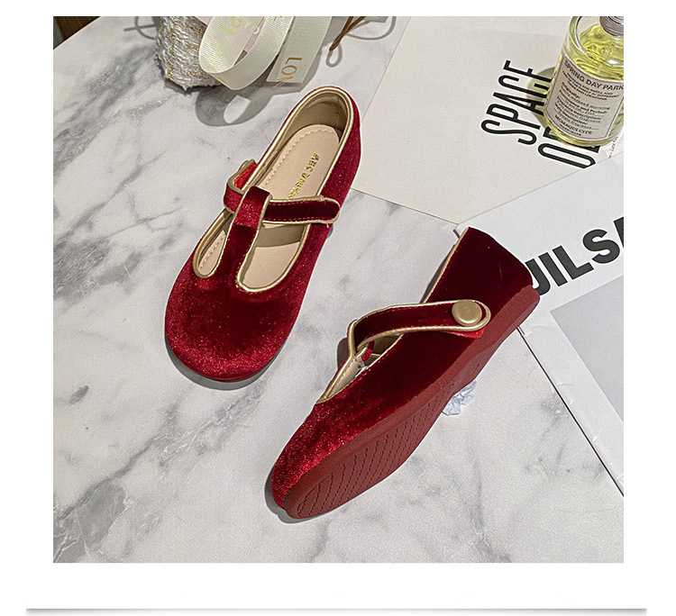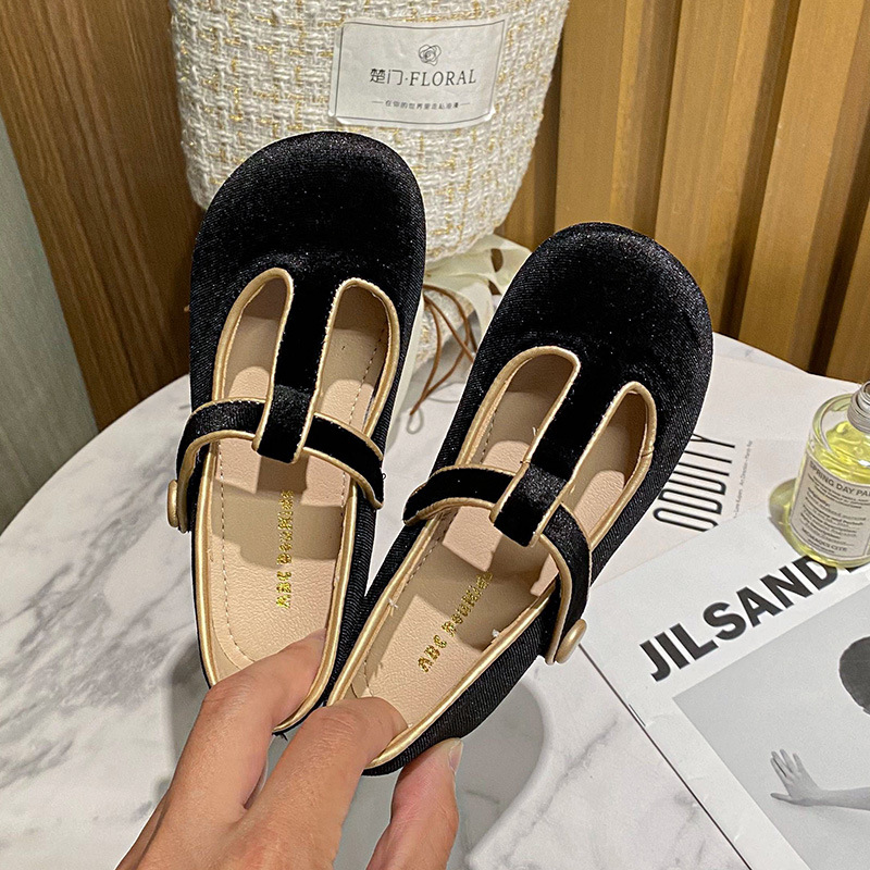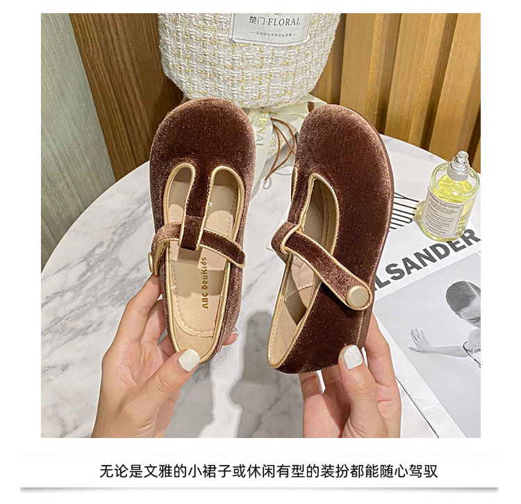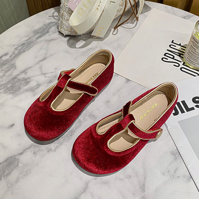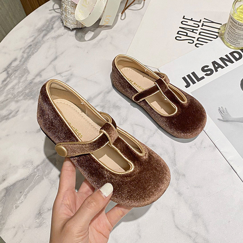 여자 신발 봄 새로운 어린이 벨벳 부드러운 바닥 공주 신발 한국식 둥근 발가락 메리 제인 싱글 레이어 신발 스웨이드 가죽 신발