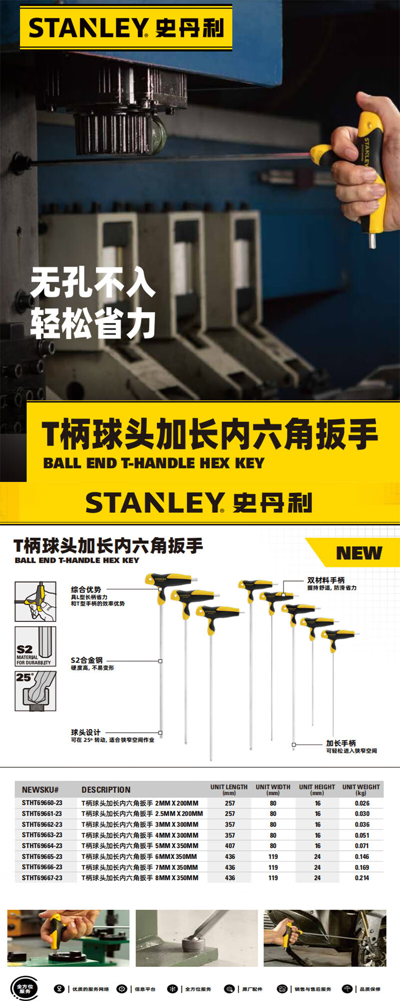 STANLEY (STANLEY)T 핸들 볼 헤드 연장 육각 렌치 2mm