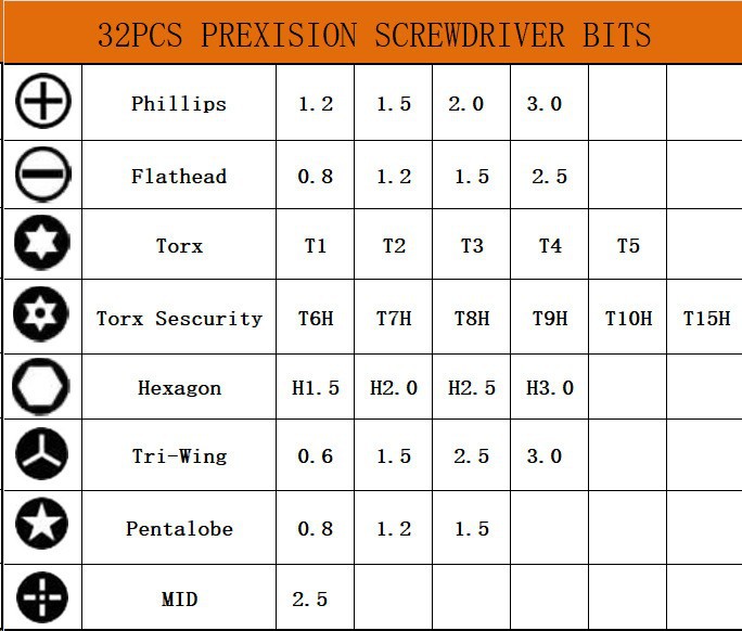 국경 32-in -1 정밀 드라이버 세트 휴대 전화 시계 노트북 게임 기계 스크루 드라이버 수리 도구
