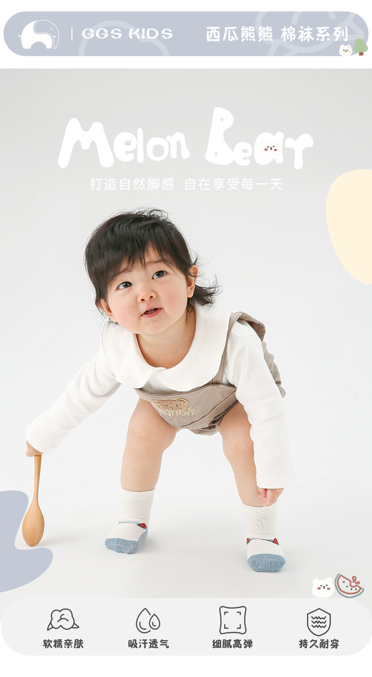 G393 아기 양말 도매 25 봄 신상 귀여운 곰돌이 남아용 짧은 양말 빗질한 면 무봉제 아기 양말스토어 가기