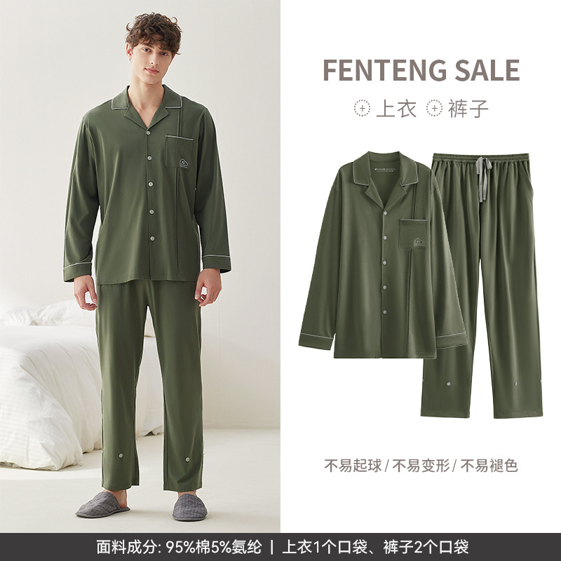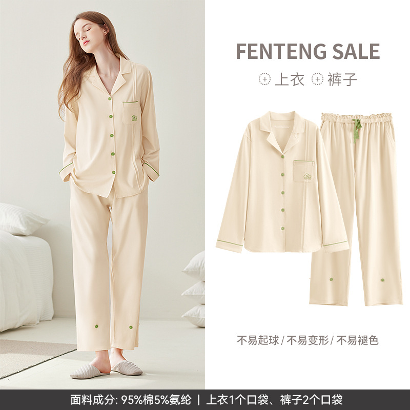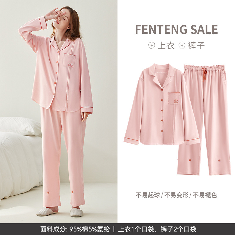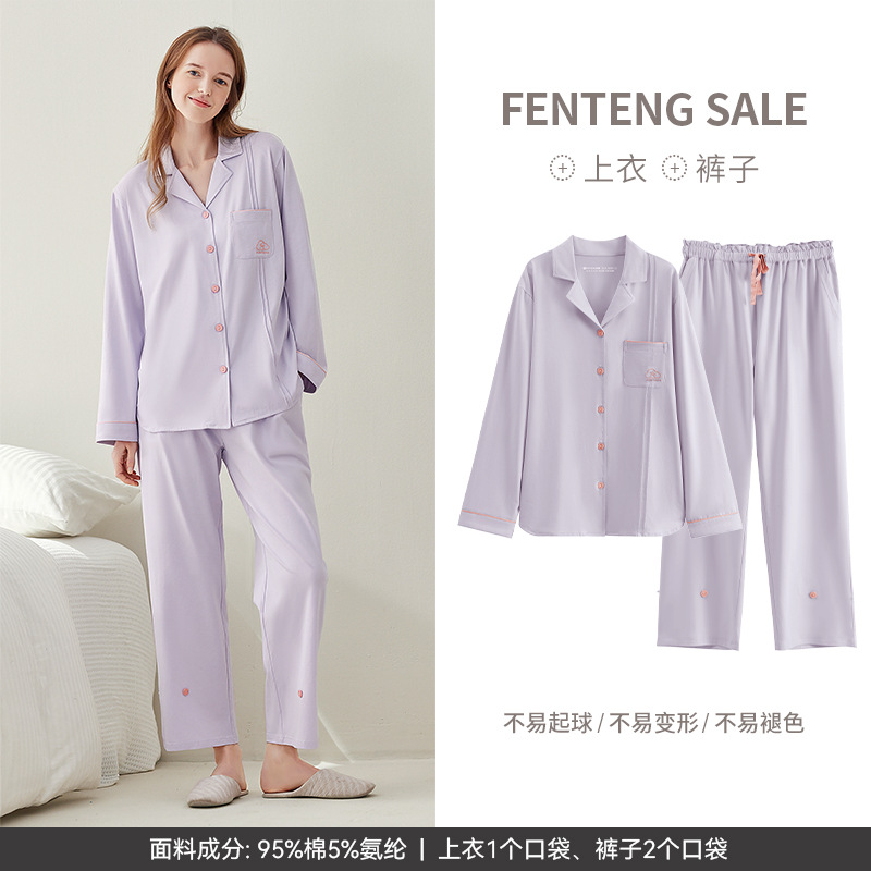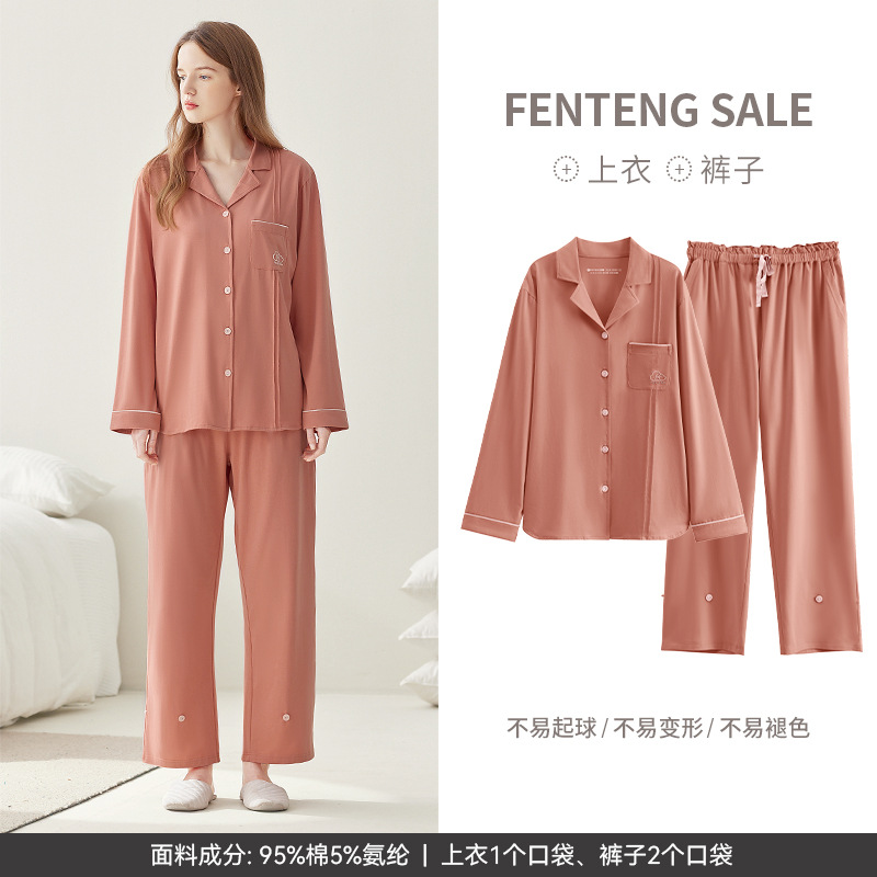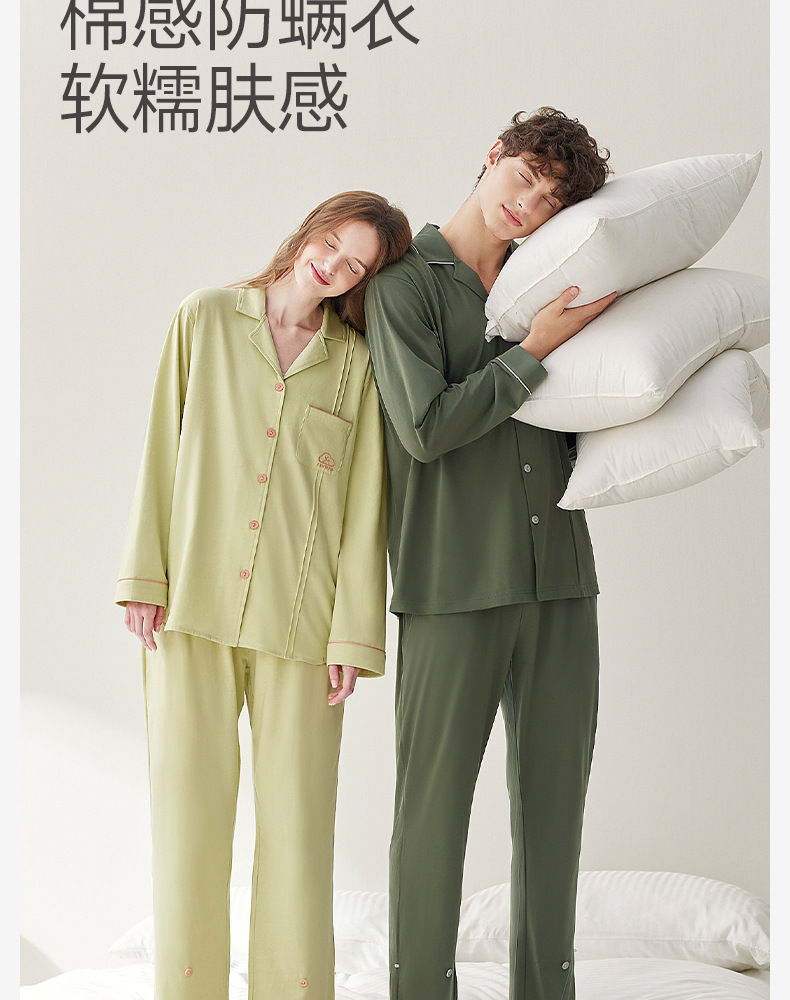 [면 안티 진드기] 커플 잠옷 면 긴팔 여성 봄 · 가을 플러스 사이즈 남성 느슨한 홈 의류 세트스토어 가기