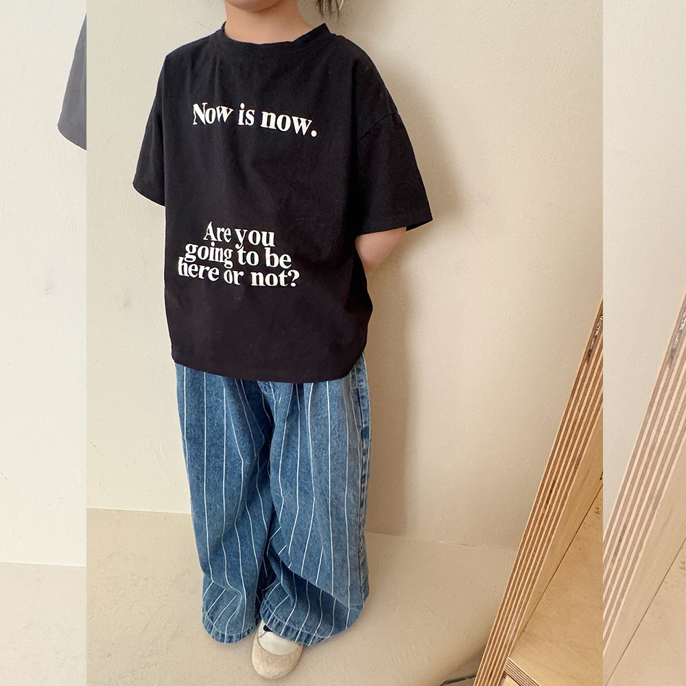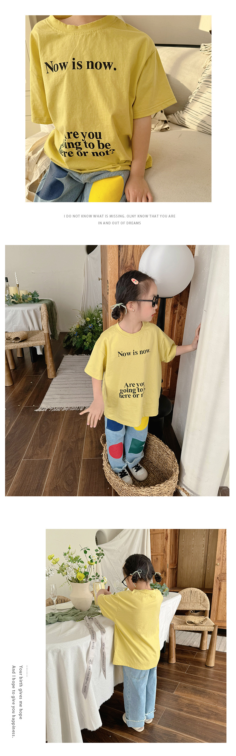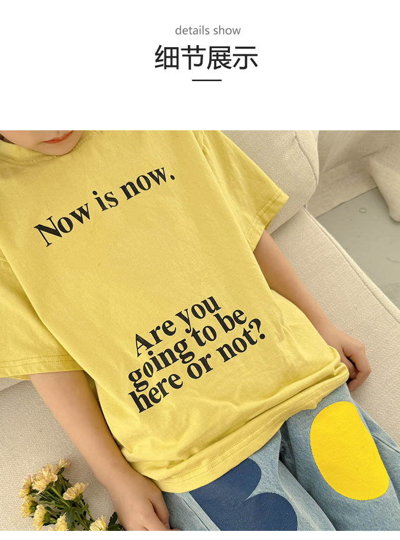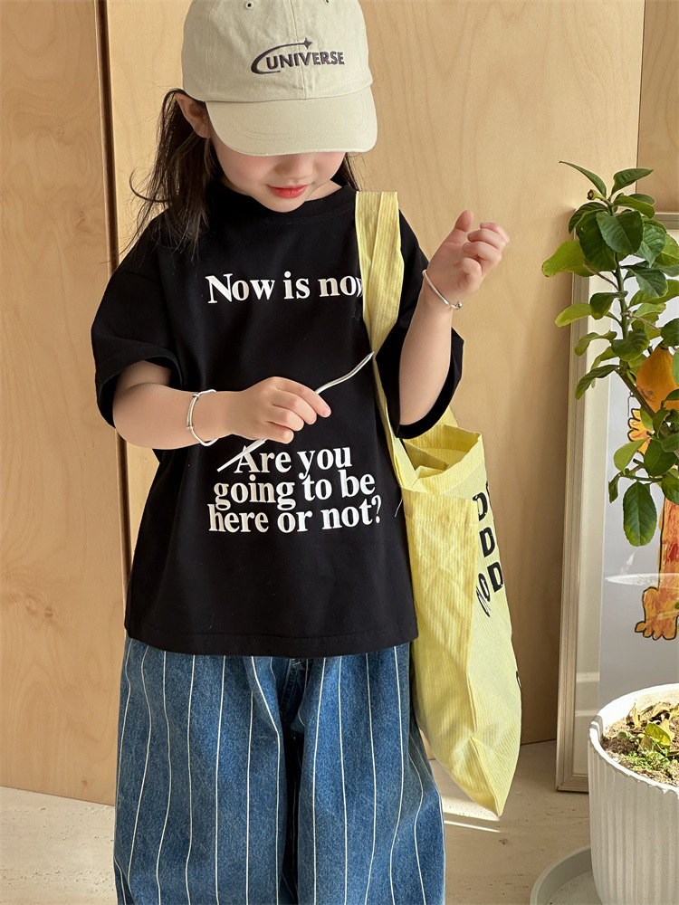 Zuo Xiaoran 2024 봄 한국식 어린이 편지 인쇄 티셔츠 패션 소년 소녀 짧은 소매 라운드 넥 티셔츠스토어 가기