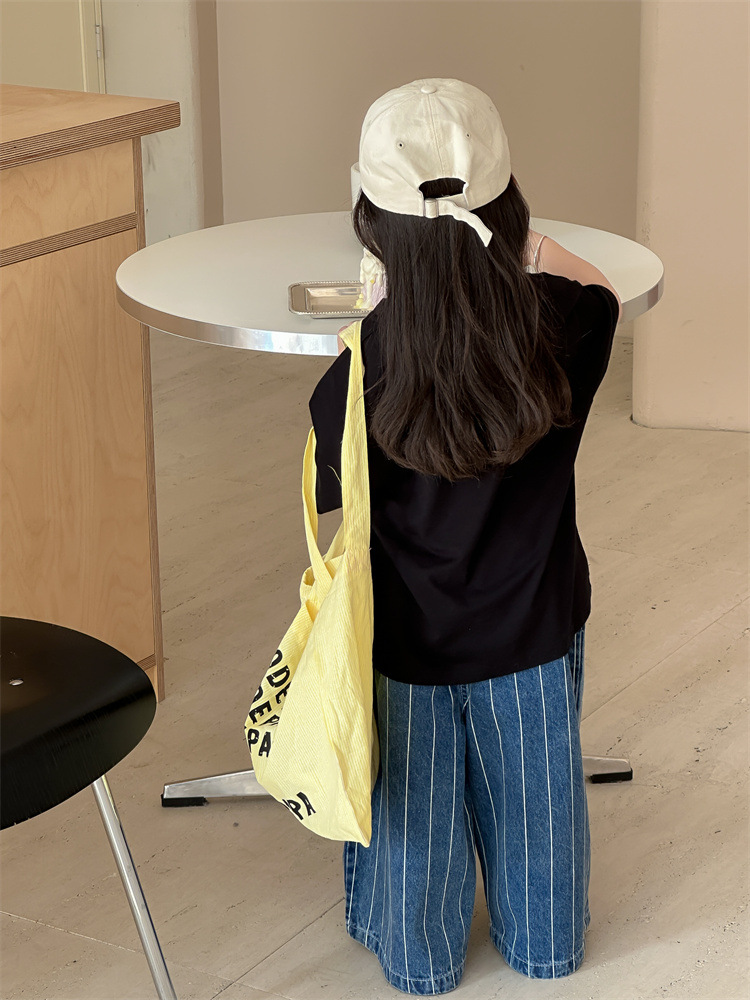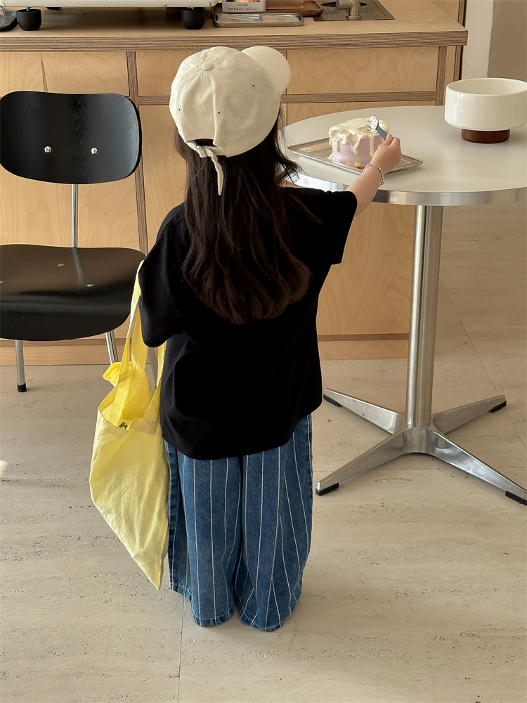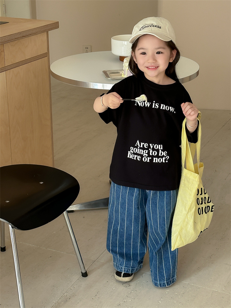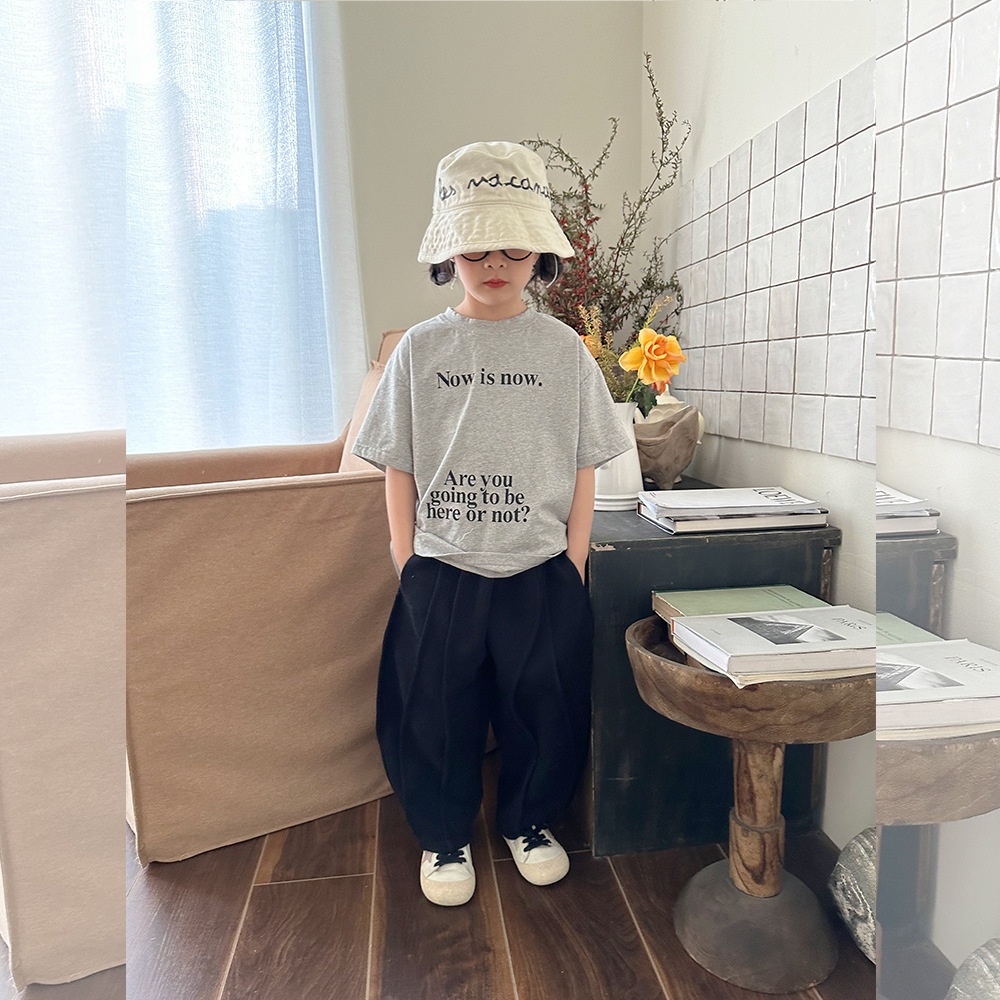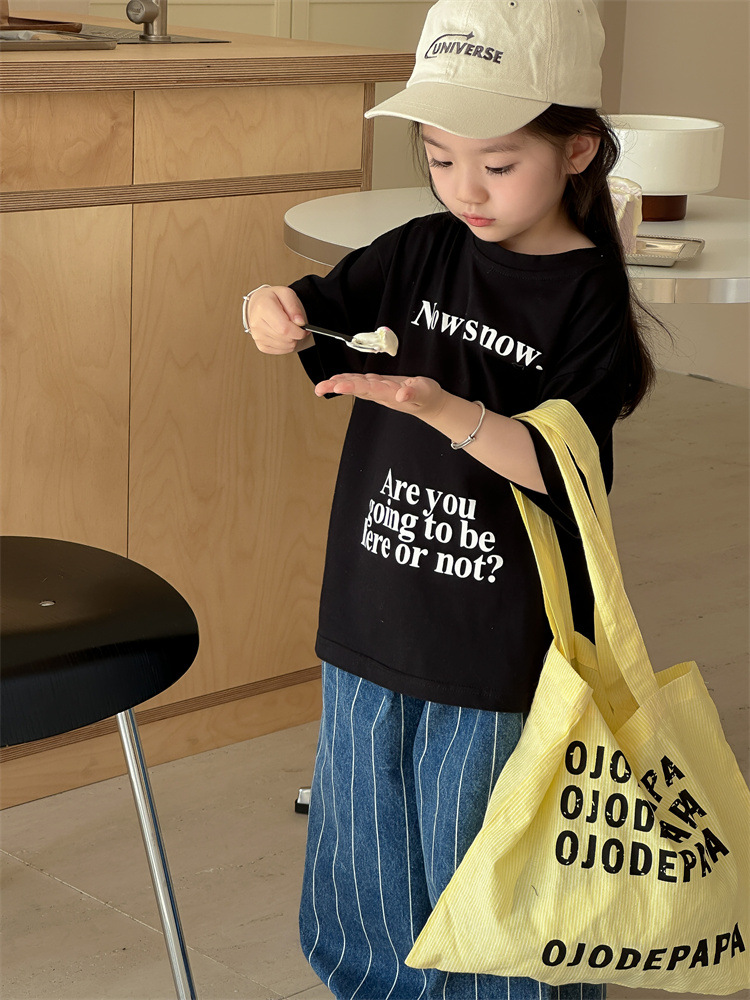 Zuo Xiaoran 2024 봄 한국식 어린이 편지 인쇄 티셔츠 패션 소년 소녀 짧은 소매 라운드 넥 티셔츠