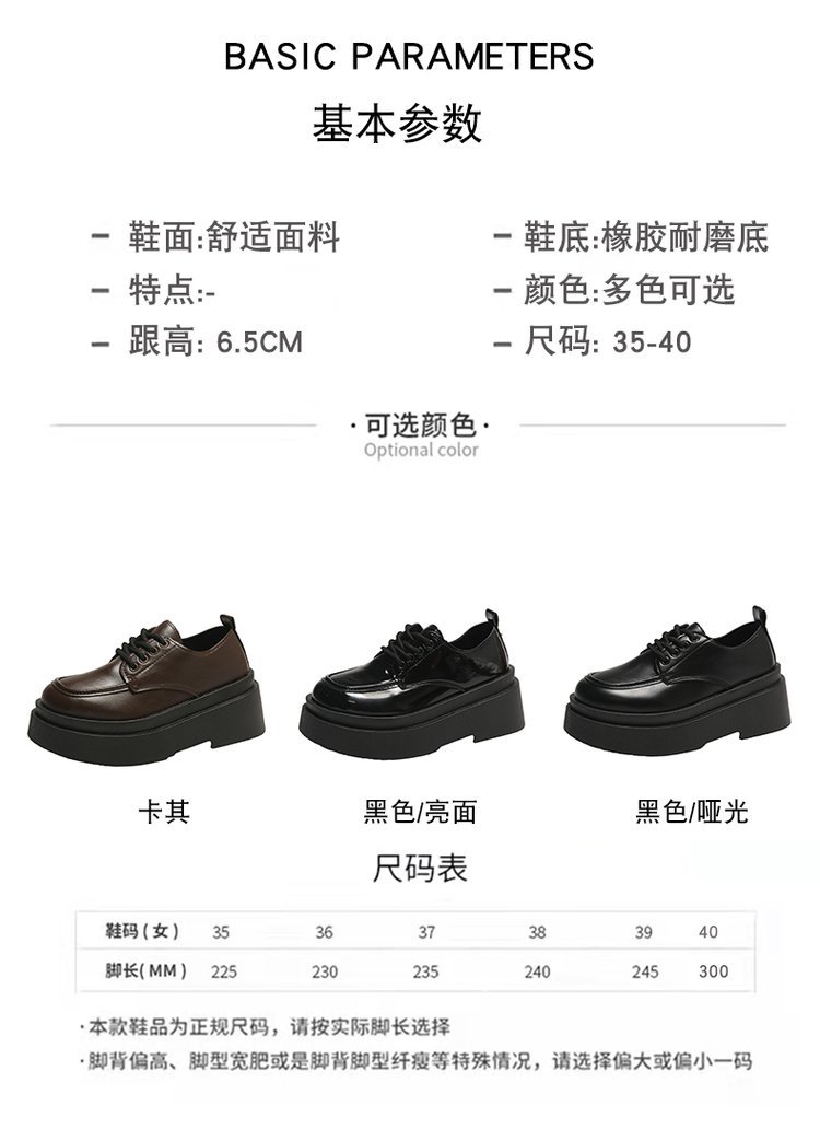 검은 복고풍 영국 스타일의 두꺼운 밑창 가죽 신발 2024 새로운 봄 다목적 라운드 토 레이스 업 청키 힐 로퍼스토어 가기