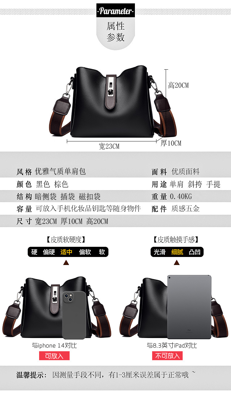 크로스보더 소프트 텍스처 버킷백 여성용 신상 고급 레트로 다층 대용량 핸드백 숄더백 크로스백스토어 가기