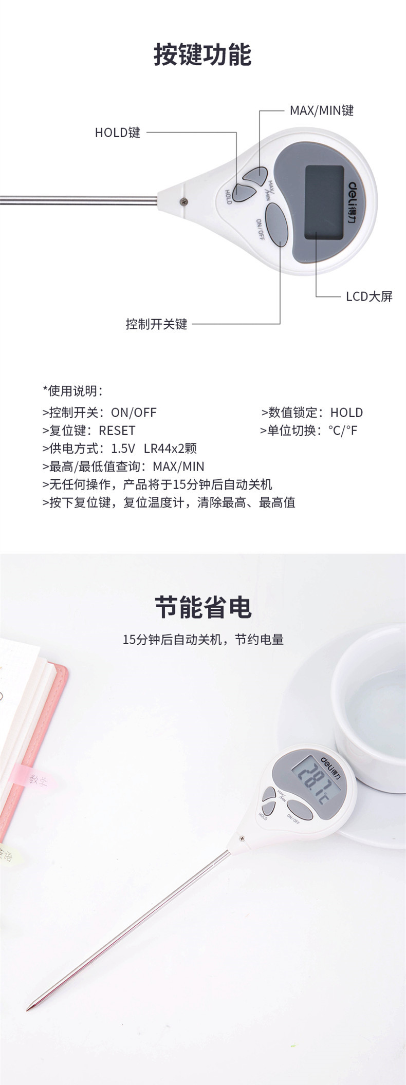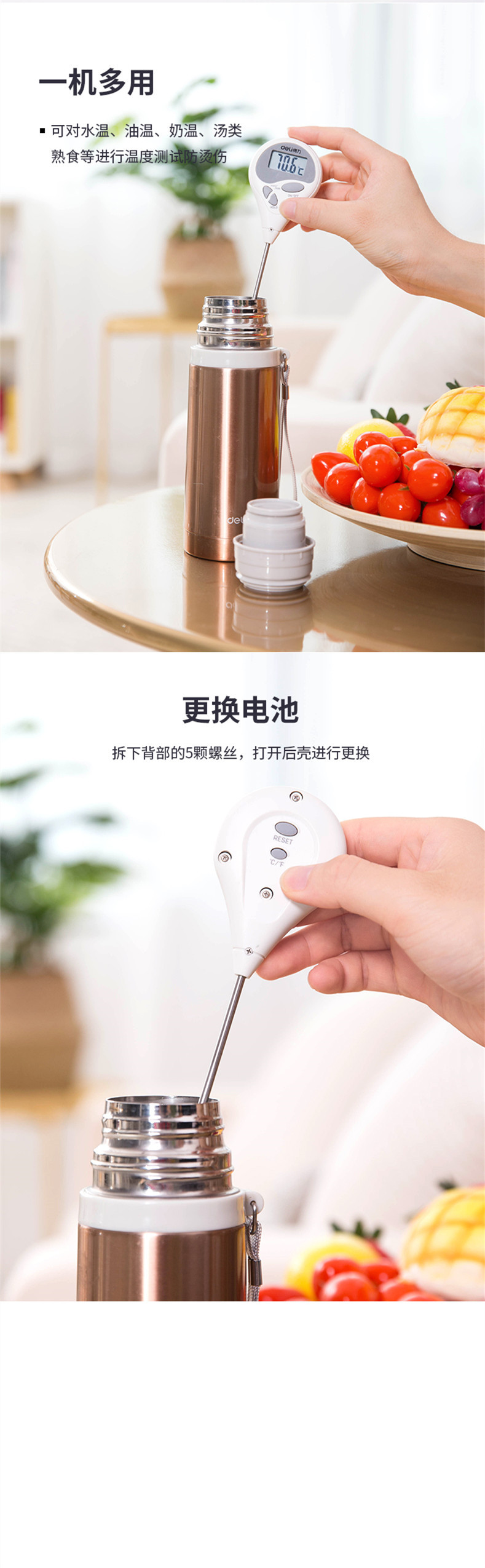 델리 8807 전자 온도계 주방 식품 온도계 아기 우유 물 측정 베이킹 오일 온도 온도계