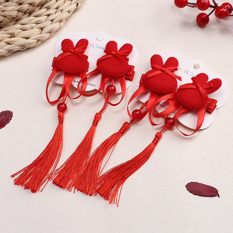 • C10#작은 토끼 빨간 술 머리핀(쌍)