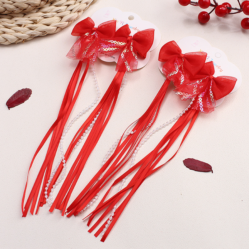 • 1 # 토템 리본 빨간 활 머리핀 (가격의 한 쌍)