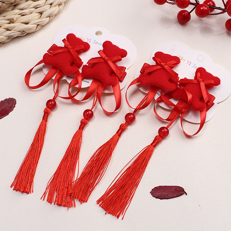 • C4#리틀베어 빅 레드 태슬 머리핀(쌍)