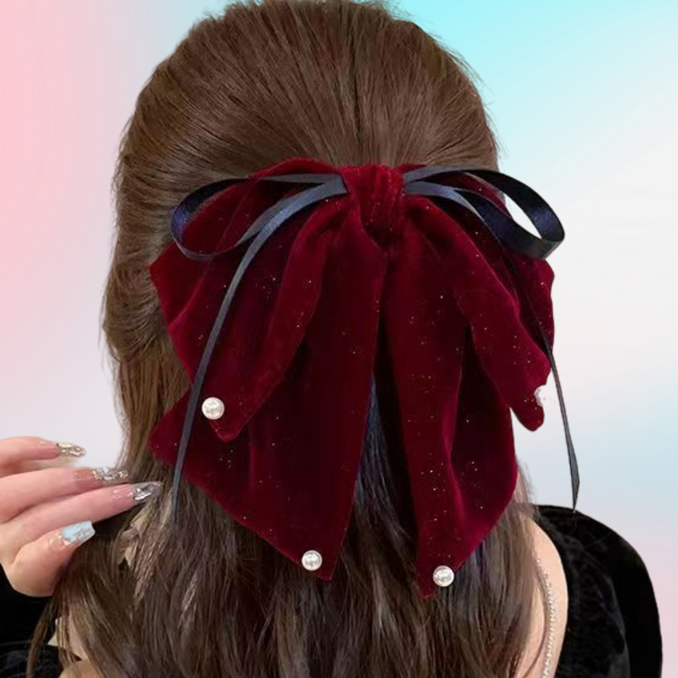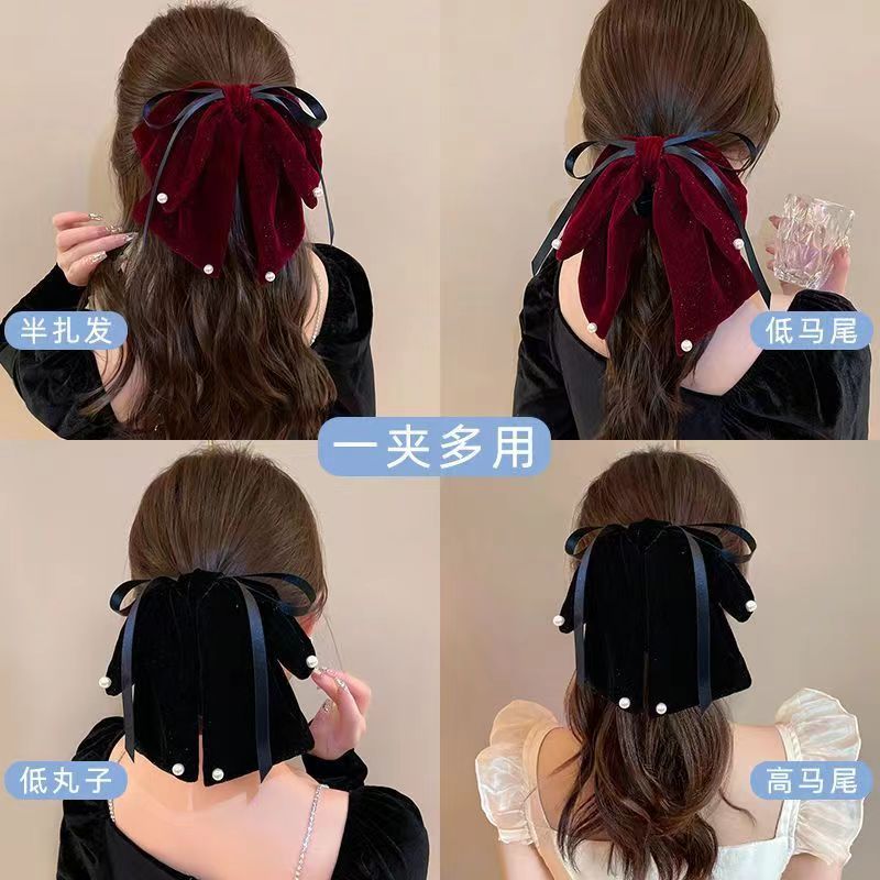 우아한 벨벳 큰 활 클립 여성 기질 새로운 높은 감각 머리핀 달콤한 우아한 상어 클립 머리 장식스토어 가기