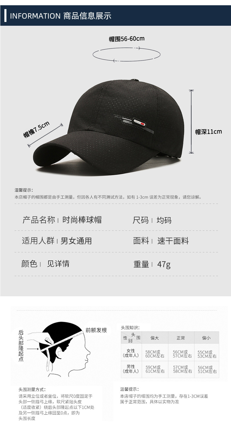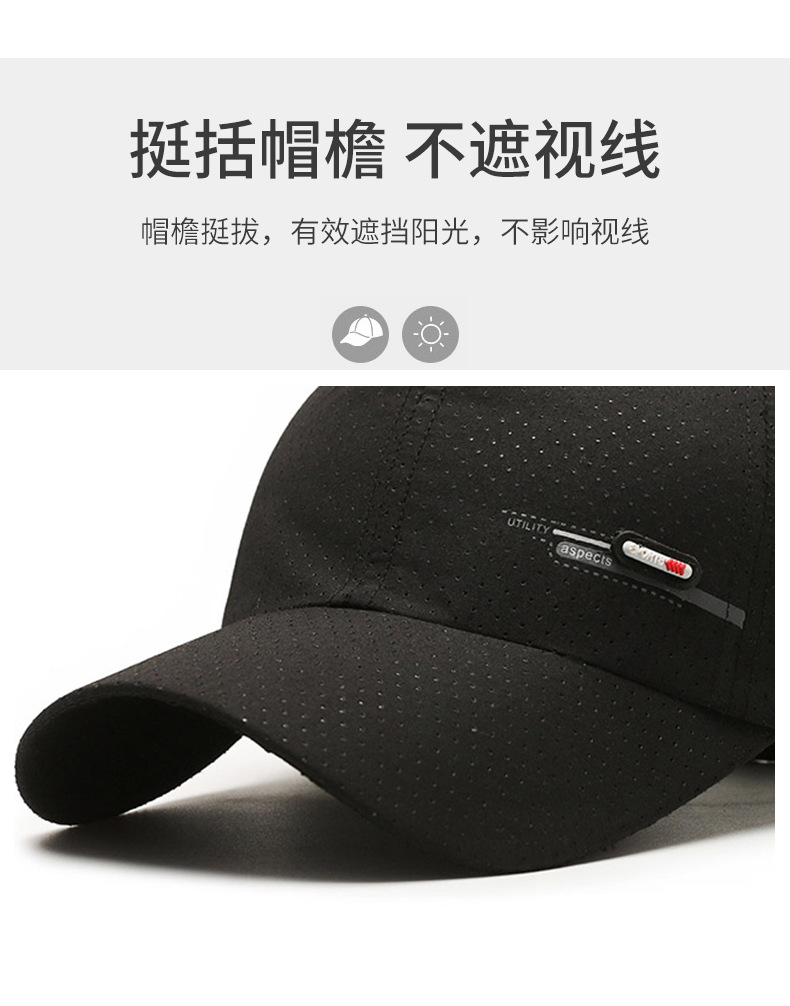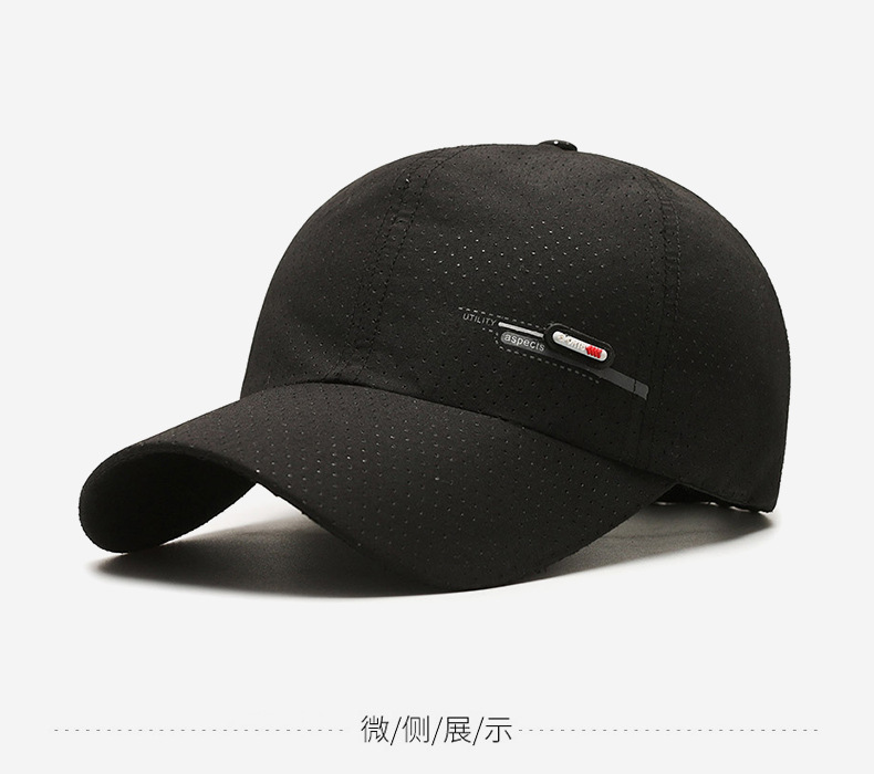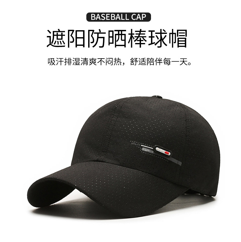 여름용 소형 가죽 라벨 속건 야구 모자 야외 스포츠 러닝 캡 패션 트렌디 심플 햇빛 가리개 모자 해외 직구