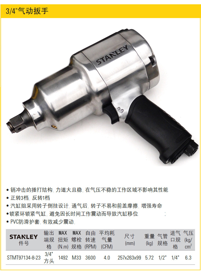STANLEY STANLEY 3/8 인치 공압 래칫 렌치 81.4N.m 대형 토크 강한 공기총 슬리브스토어 가기