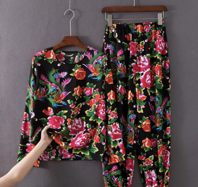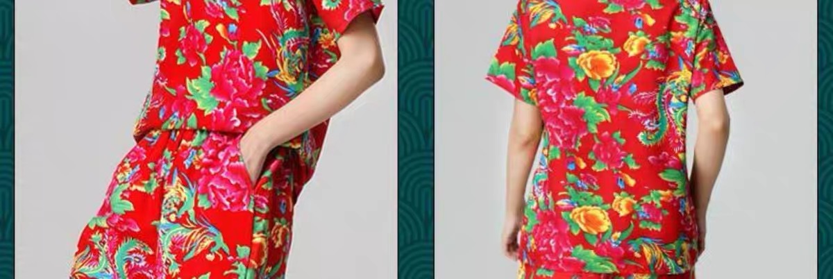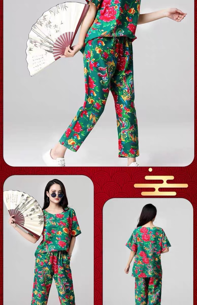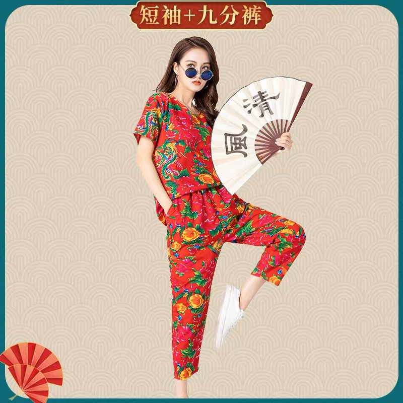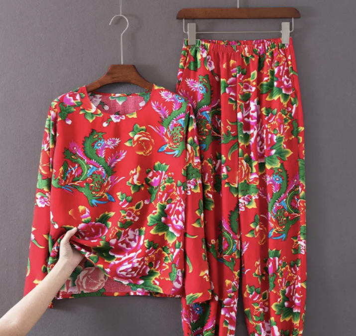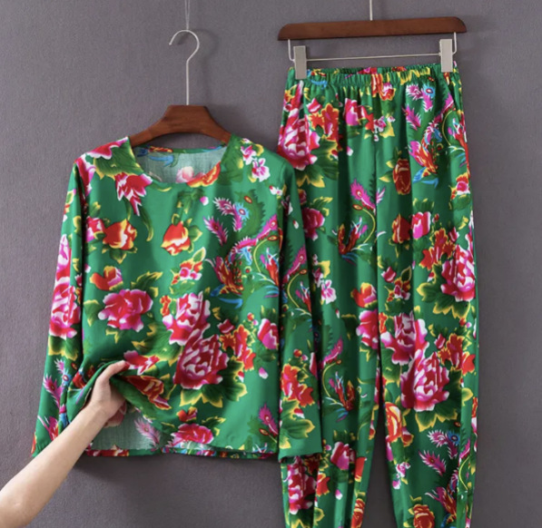 동북 큰 꽃 천 원피스 모닝 로브 생일 파티 사이버 축하 신부 들러리 여자 친구 Errenzhuan Pajamas 자매 공연 세트