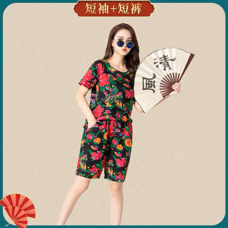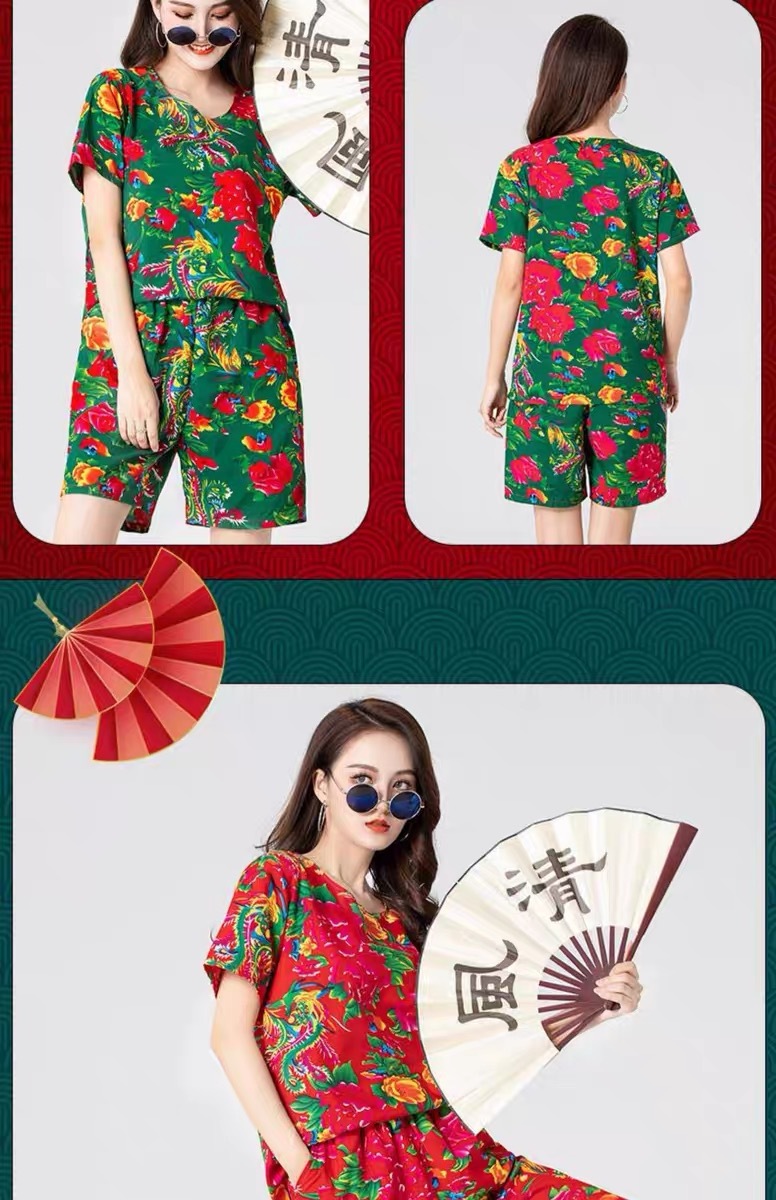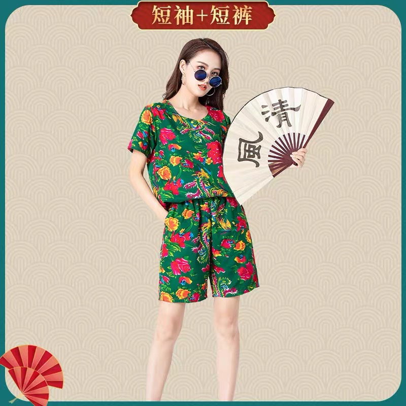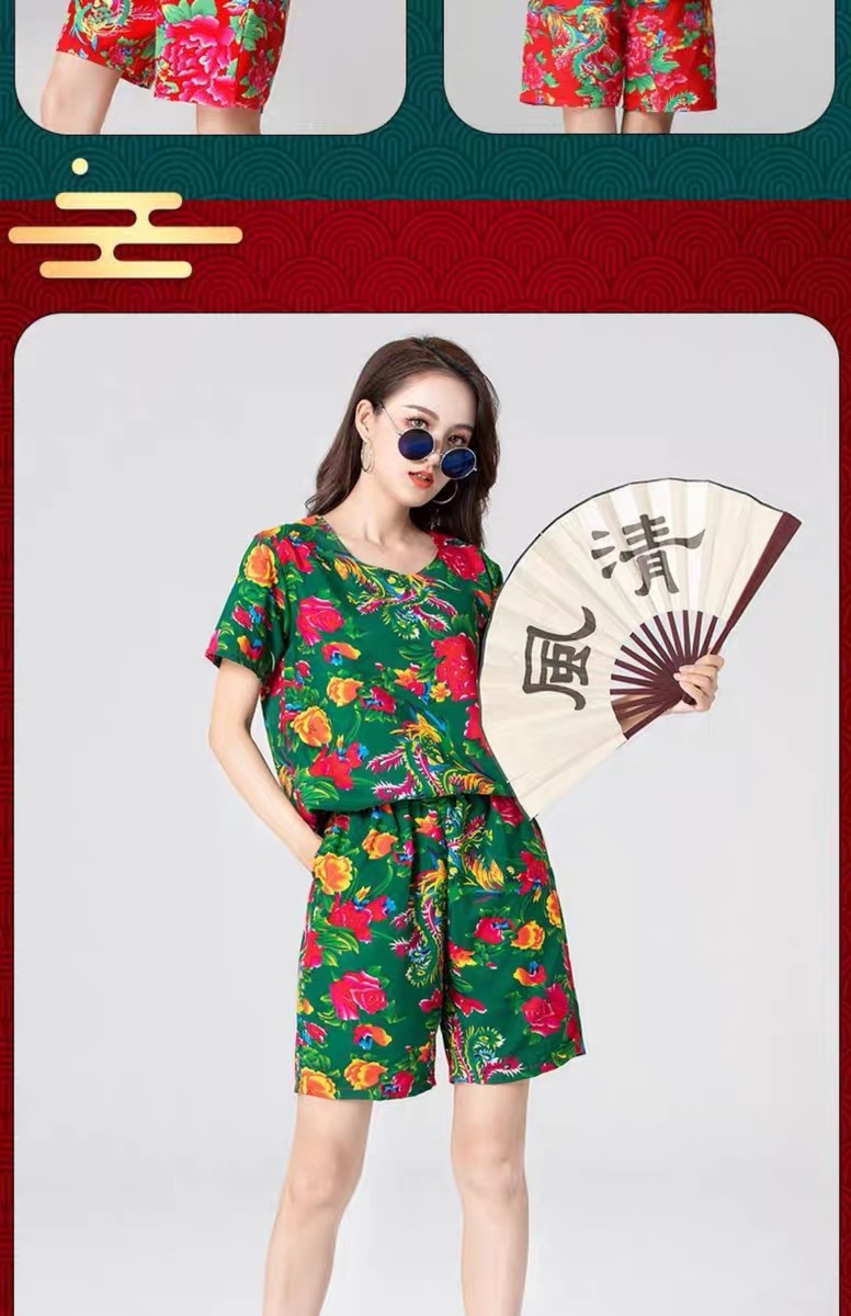 • 녹색 꽃 짧은 T 바지 [투피스]]
