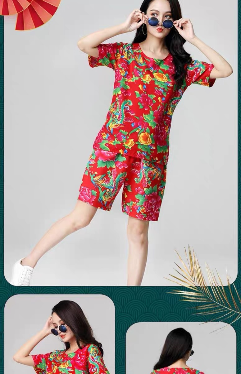 • 녹색 꽃 짧은 T 반바지 [투피스]]