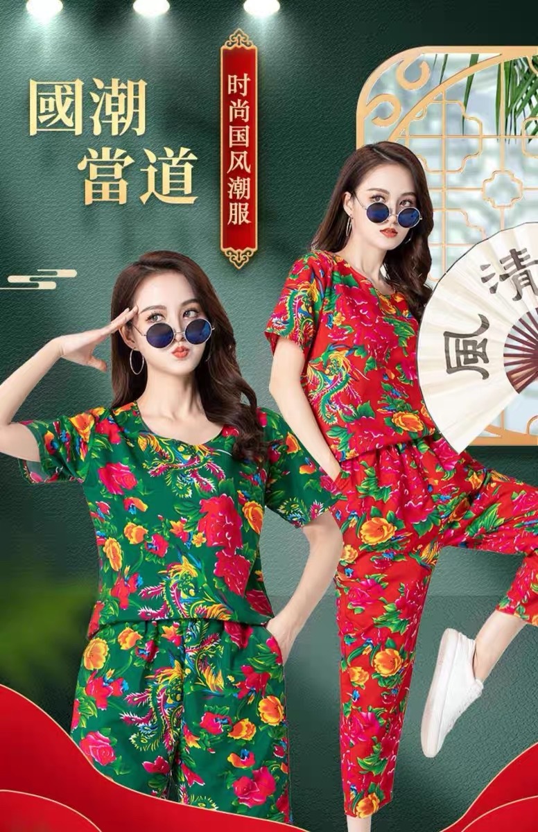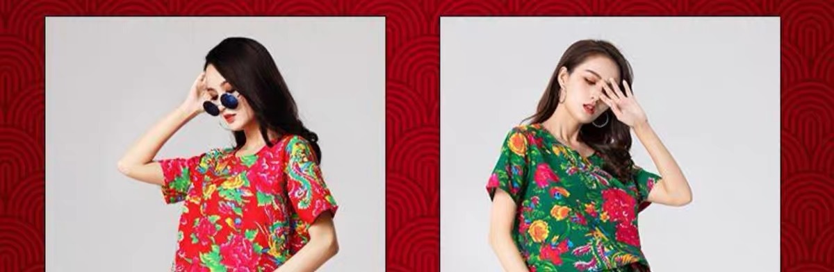 동북 큰 꽃 천 원피스 모닝 로브 생일 파티 사이버 축하 신부 들러리 여자 친구 Errenzhuan Pajamas 자매 공연 세트스토어 가기